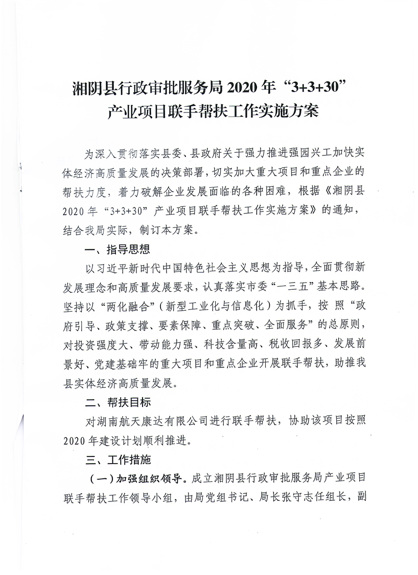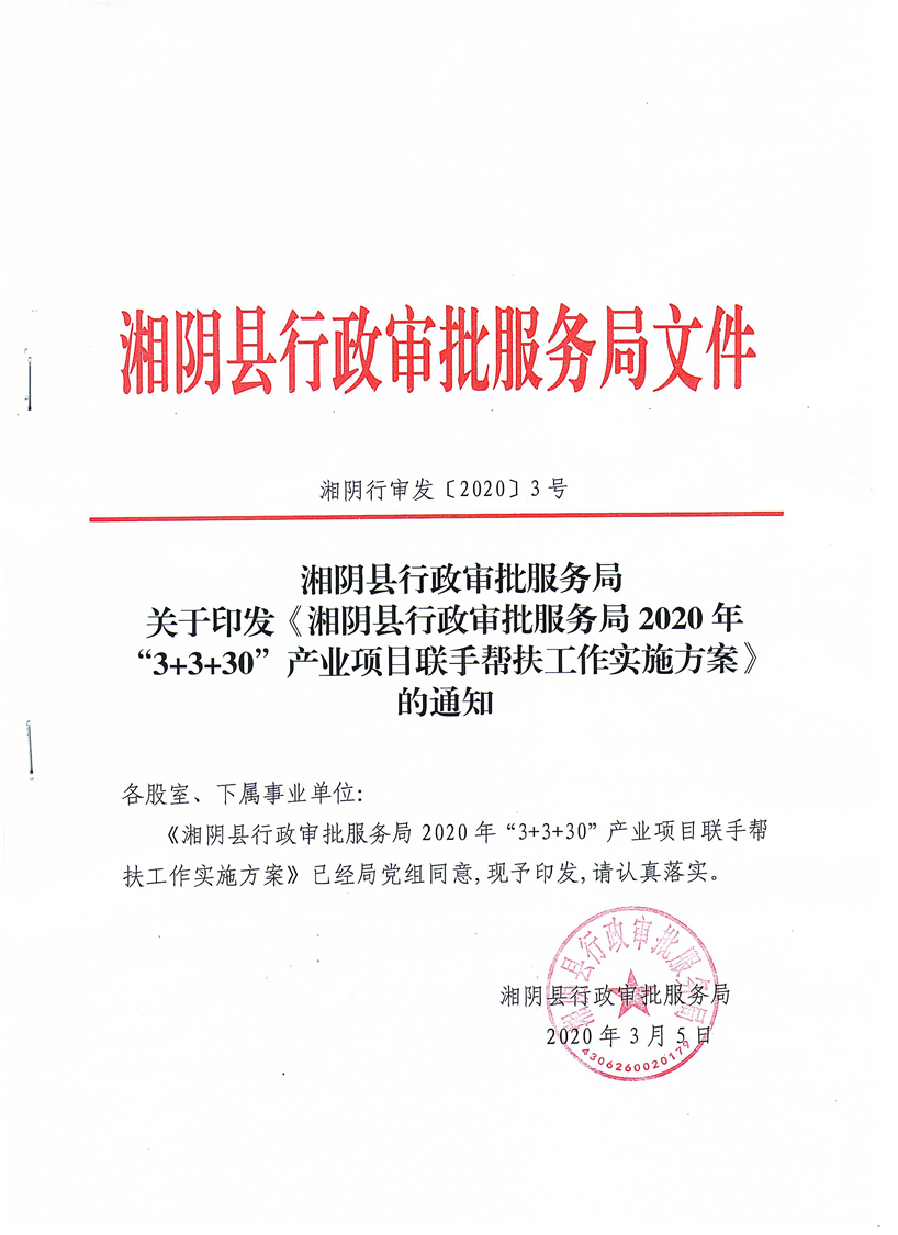 湘阴县行政审批服务局2020年“3+3+30” 产业项目联手帮扶工作实施方案