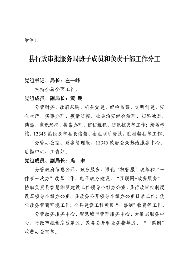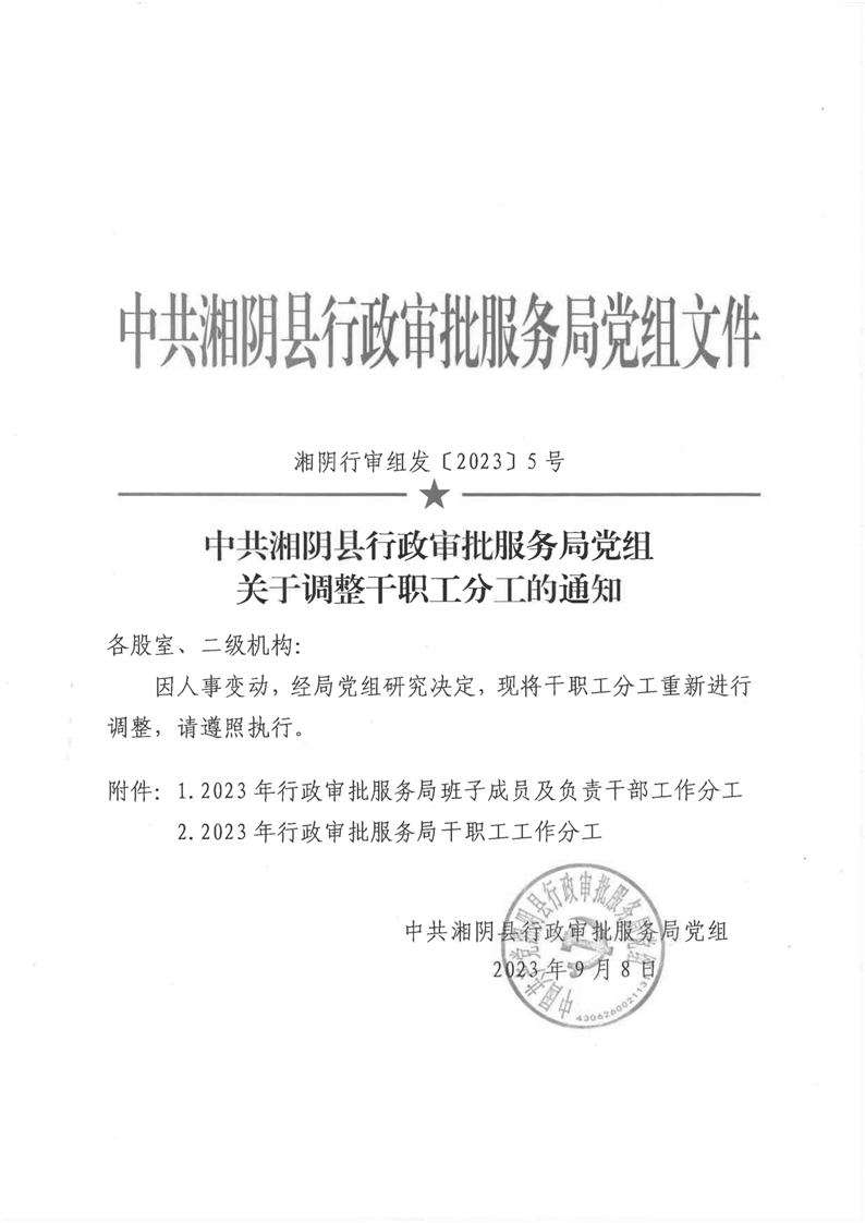 中共湘阴县行政审批服务局党组关于调整干职工分工的通知