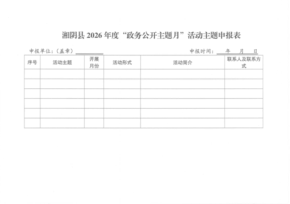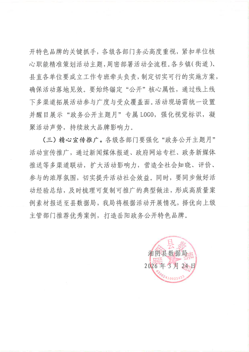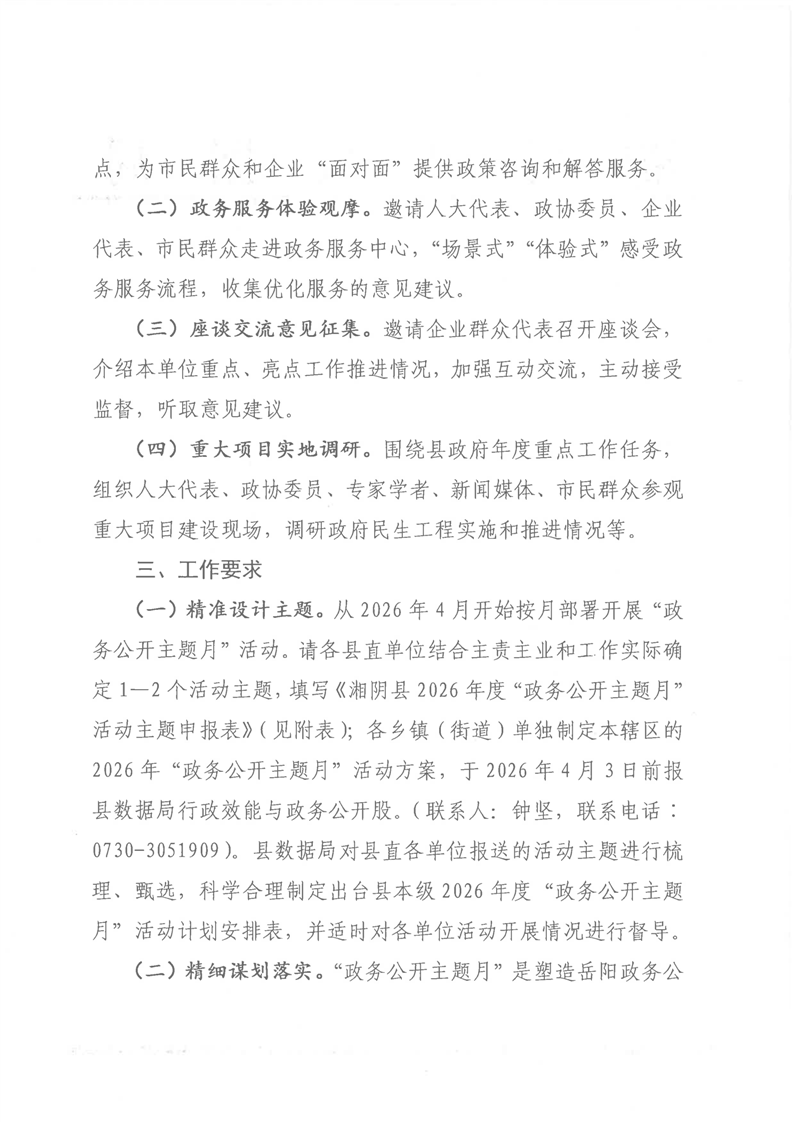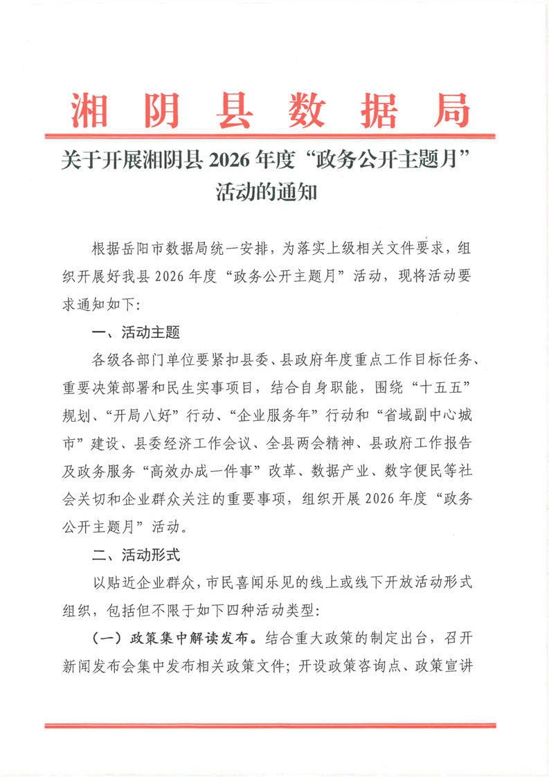 关于开展湘阴县2026年度“政务公开主题月”活动的通知