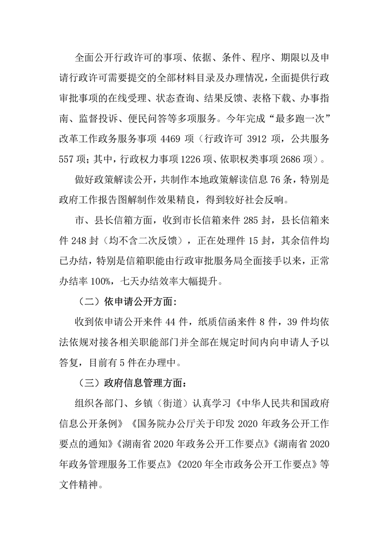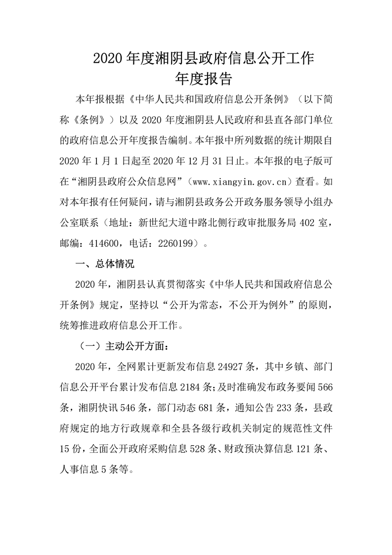 湘阴县人民政府2020年度政府信息公开工作年度报告
