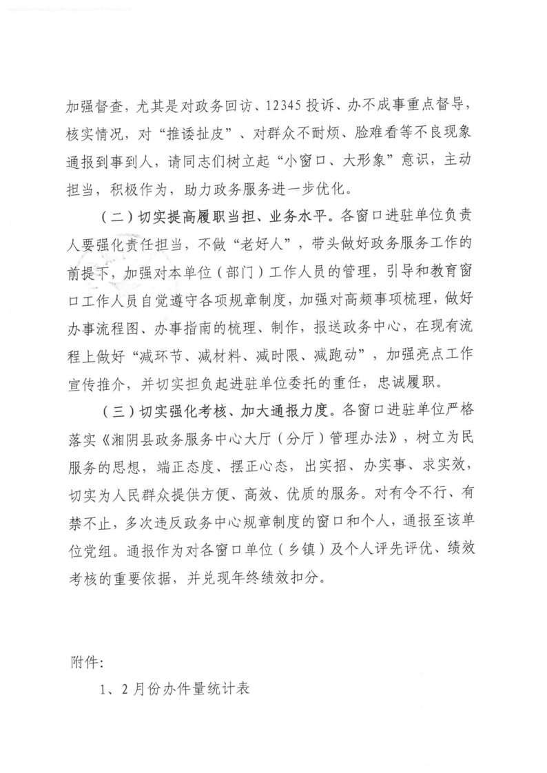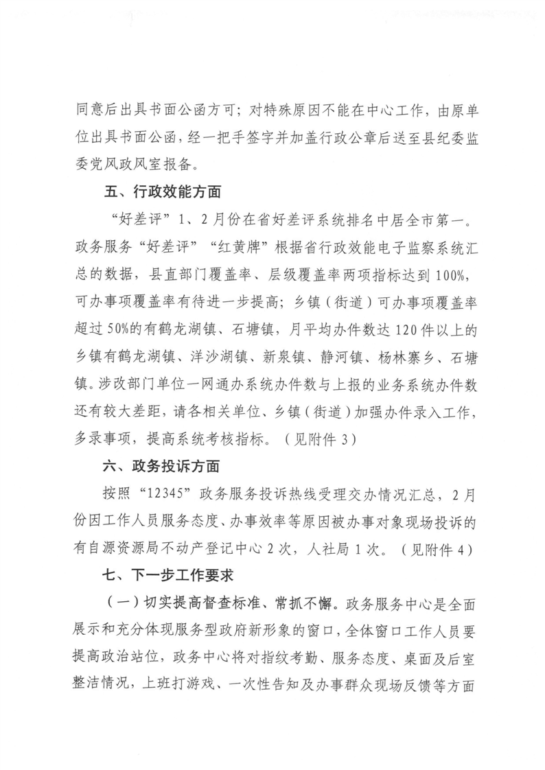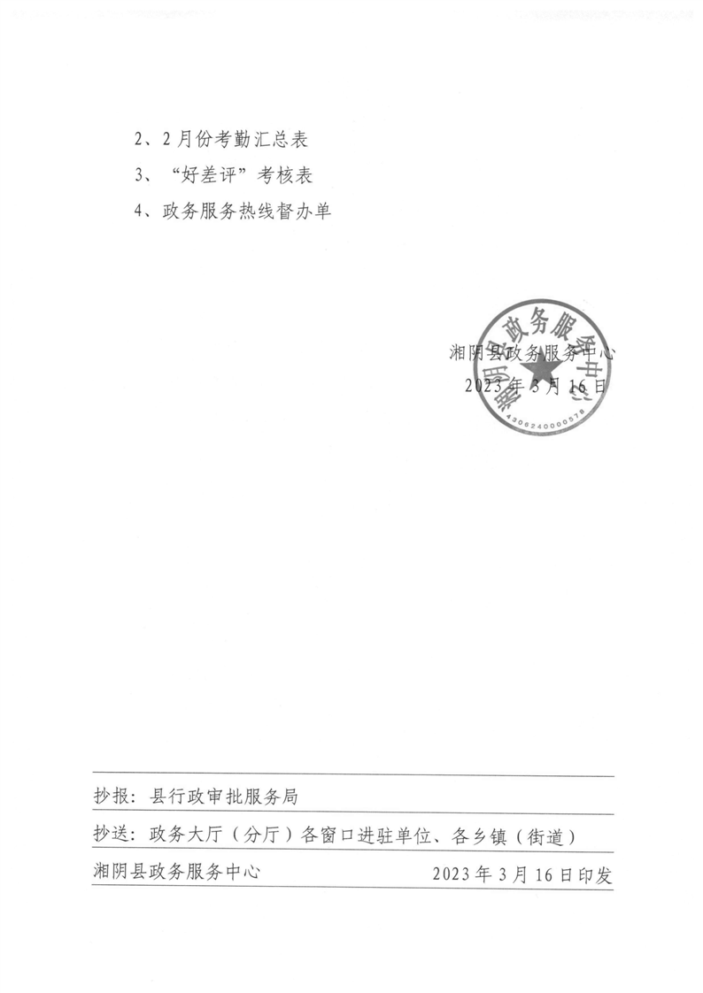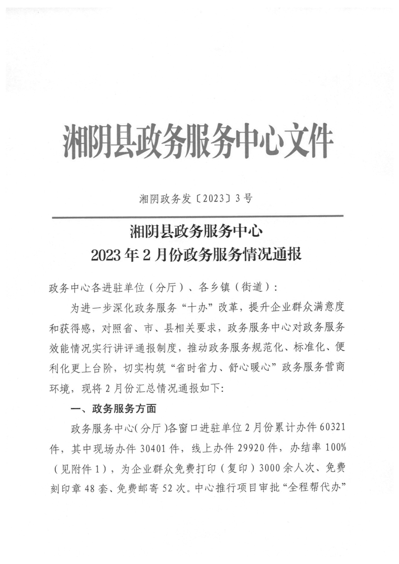 湘阴政务发〔2023〕3号2月份政务服务情况通报