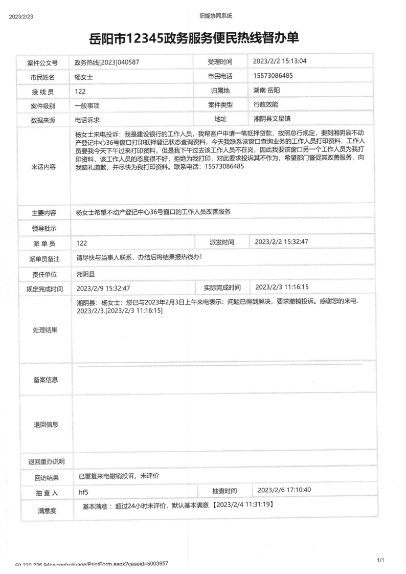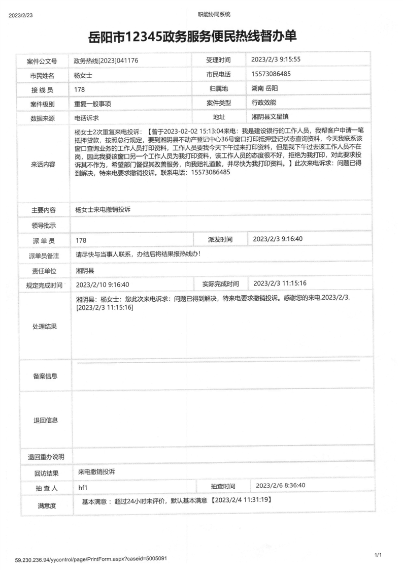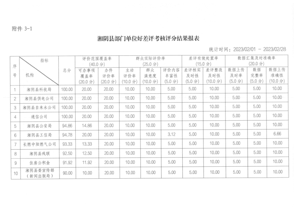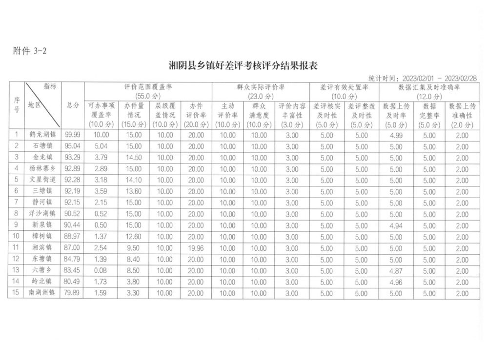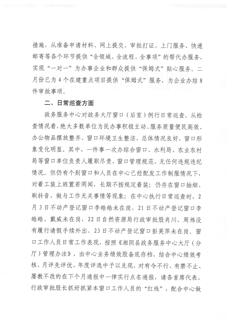 湘阴政务发〔2023〕3号2月份政务服务情况通报