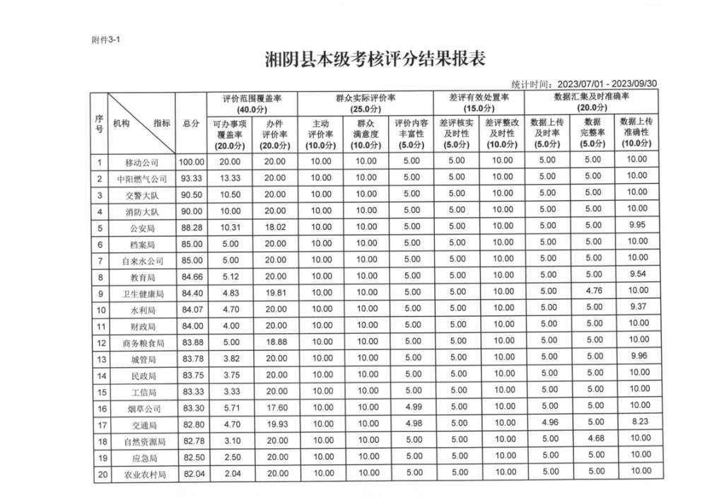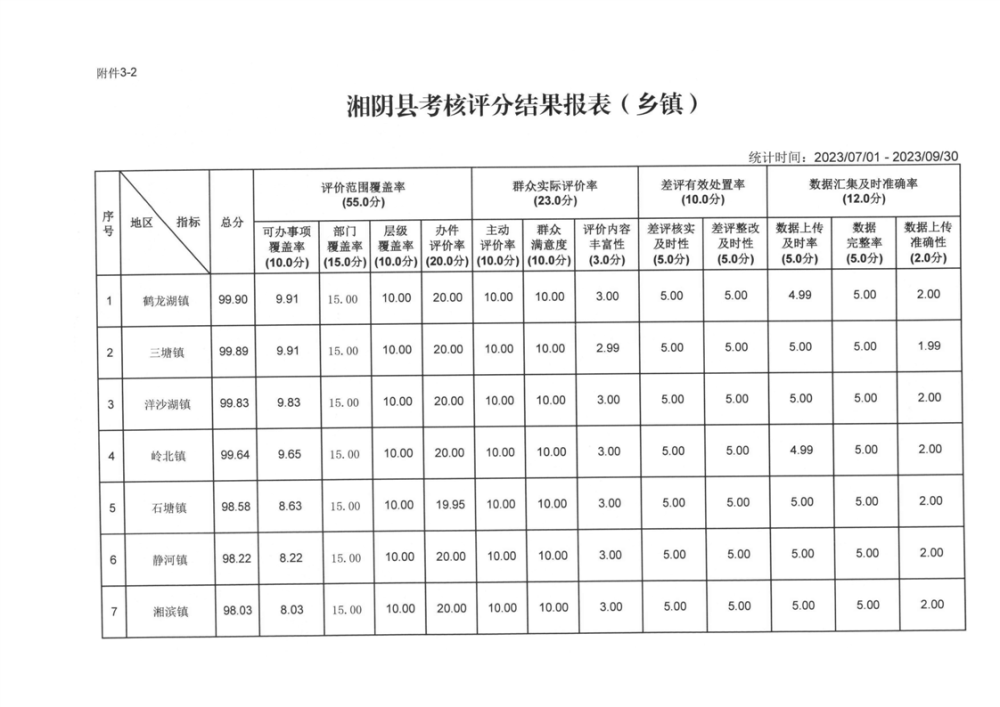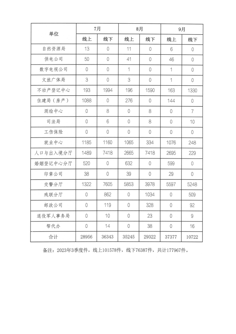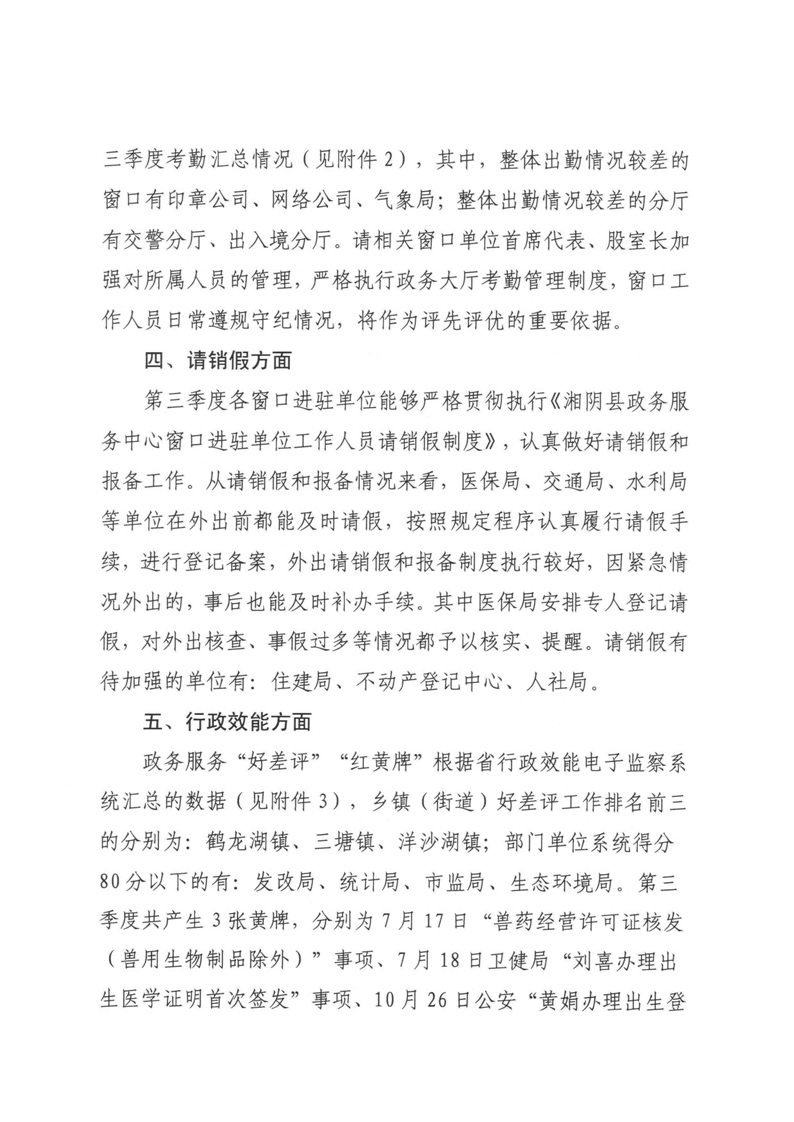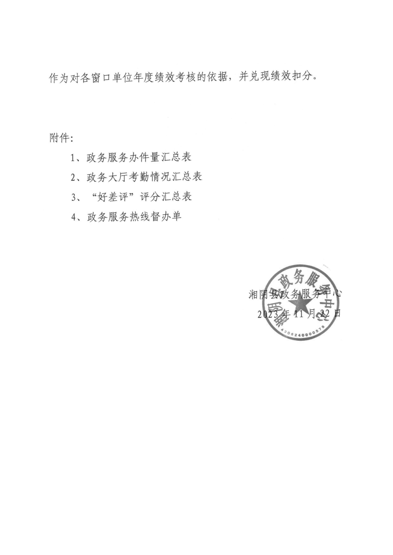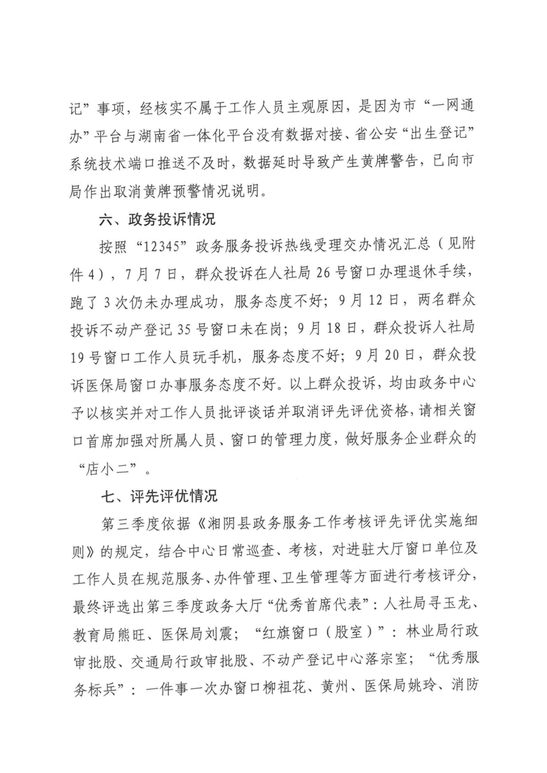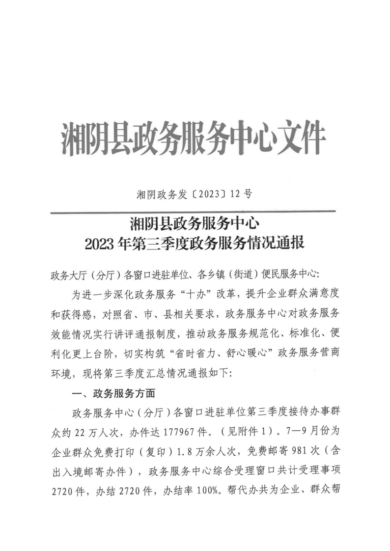 湘阴政务发〔2023〕12号2023年第三季度度政务服务情况通报