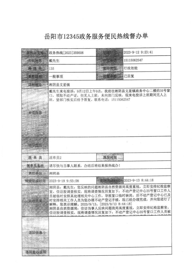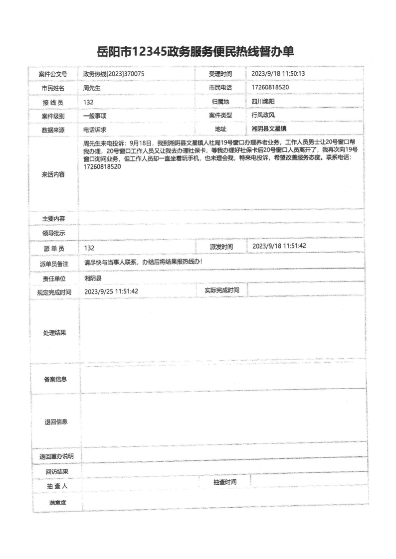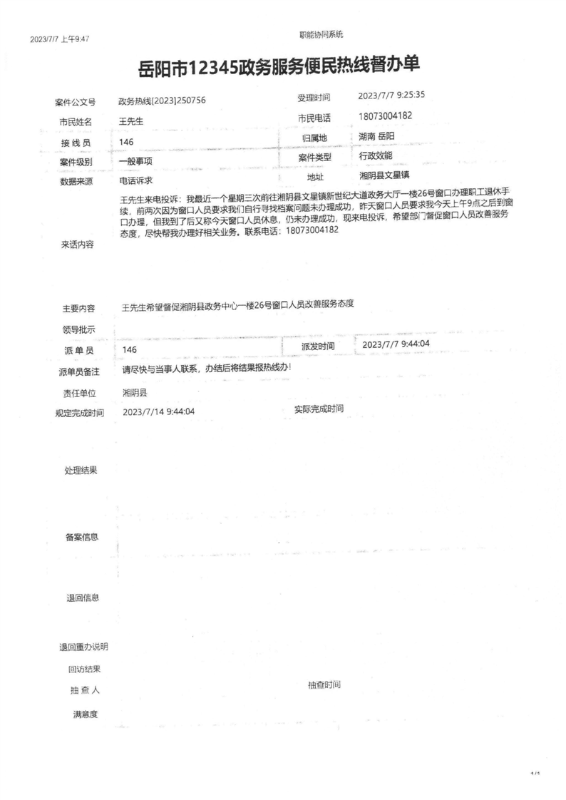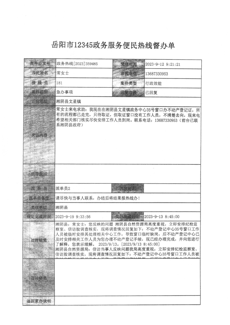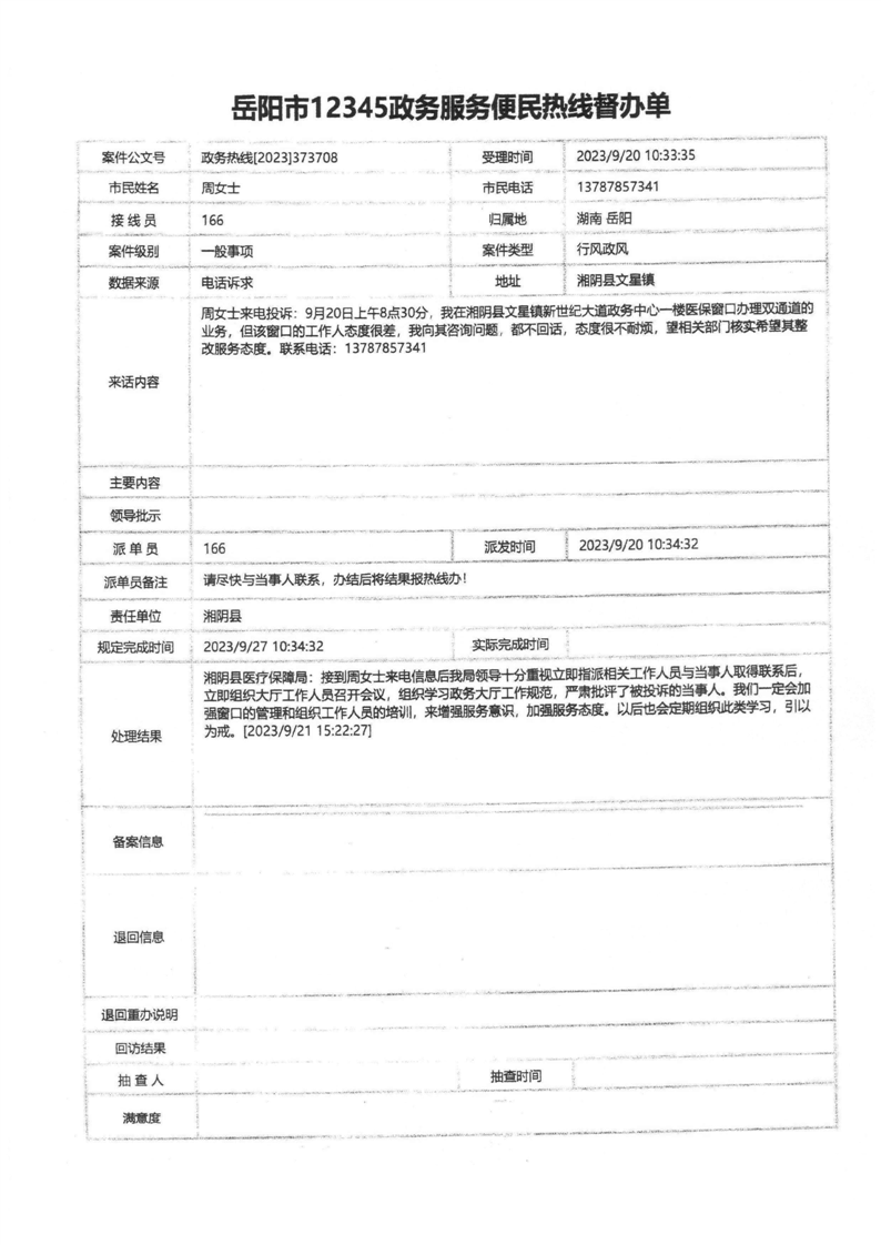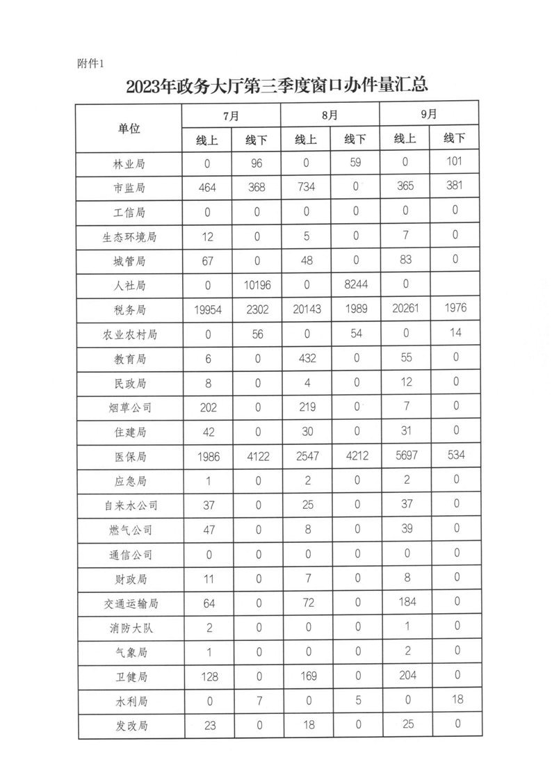 湘阴政务发〔2023〕12号2023年第三季度度政务服务情况通报