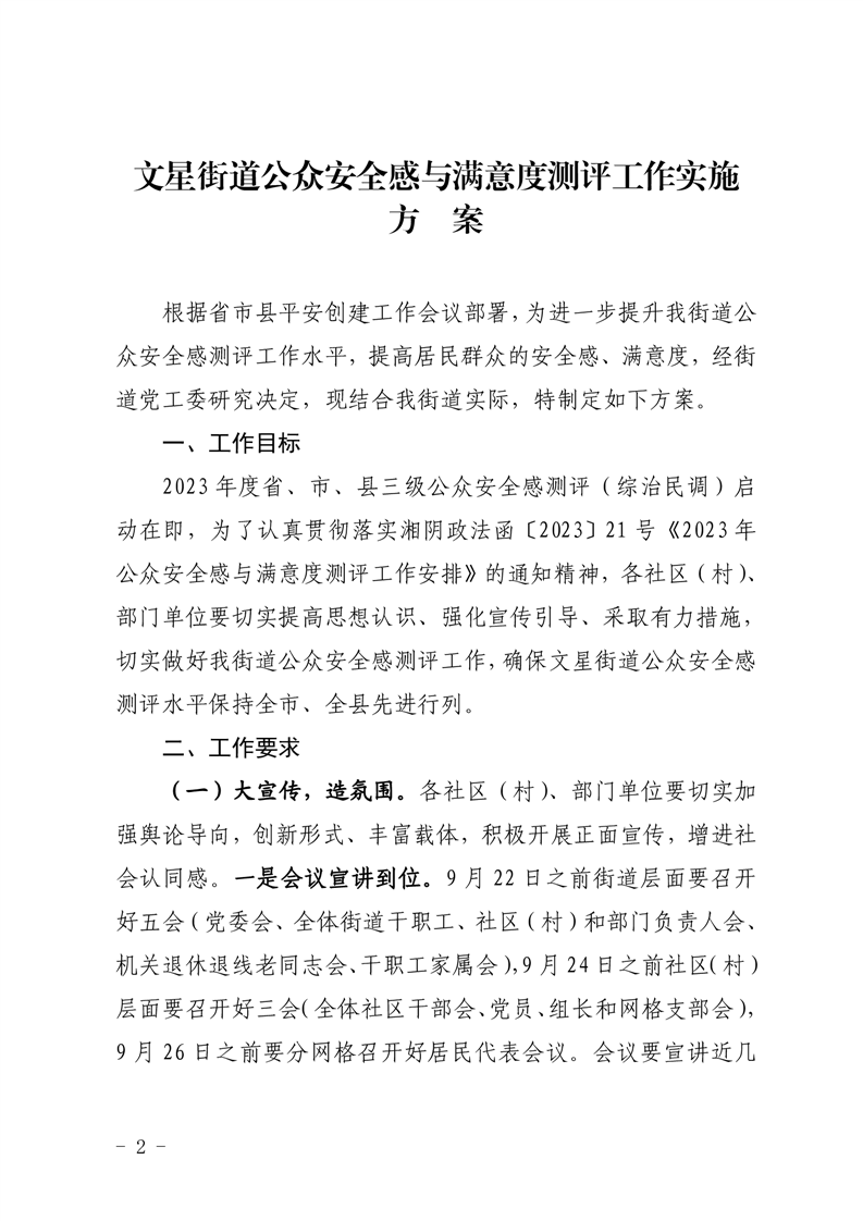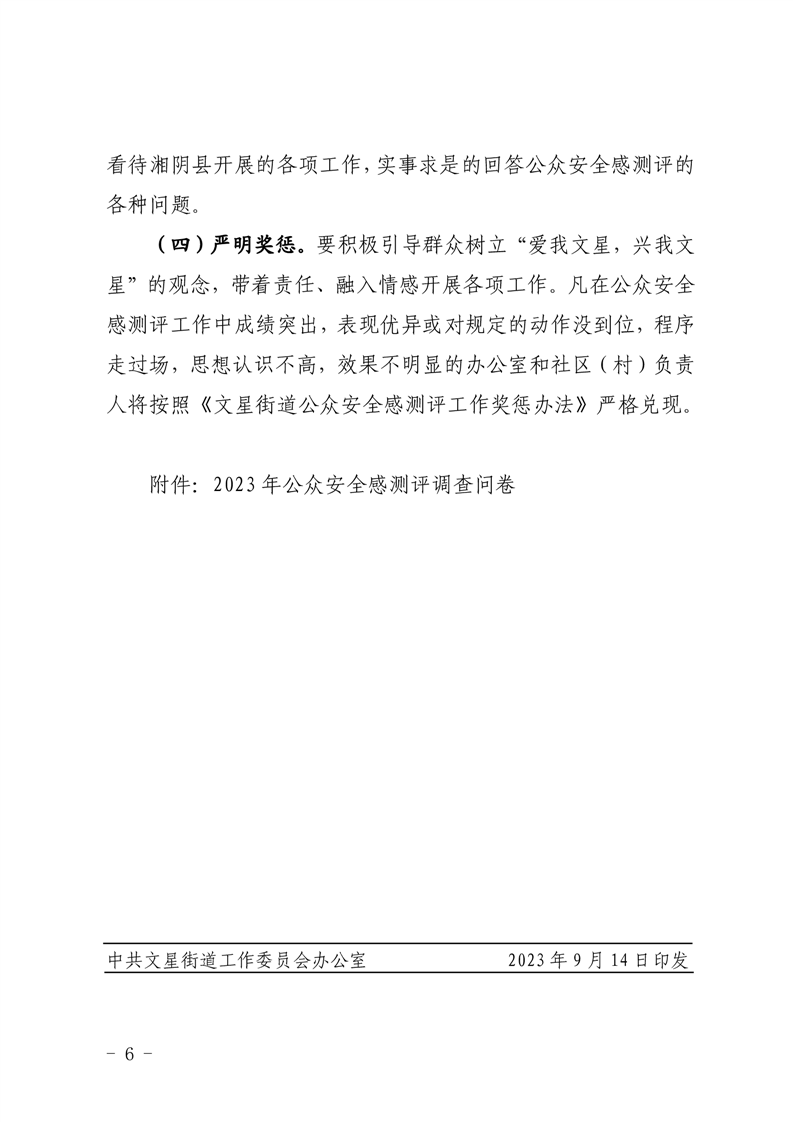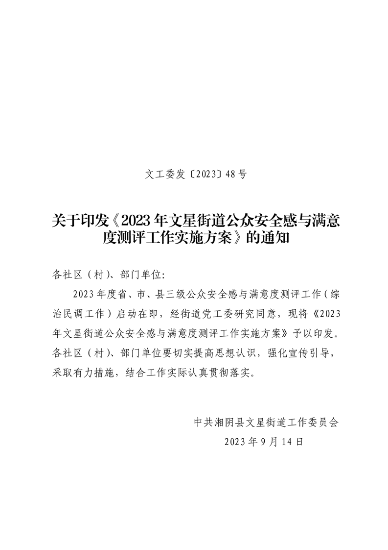 关于印发《2023年文星街道公众安全感与满意度测评工作实施方案》的通知