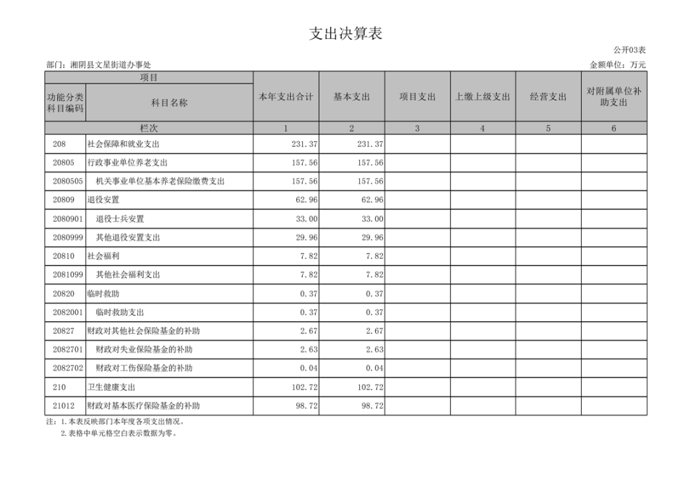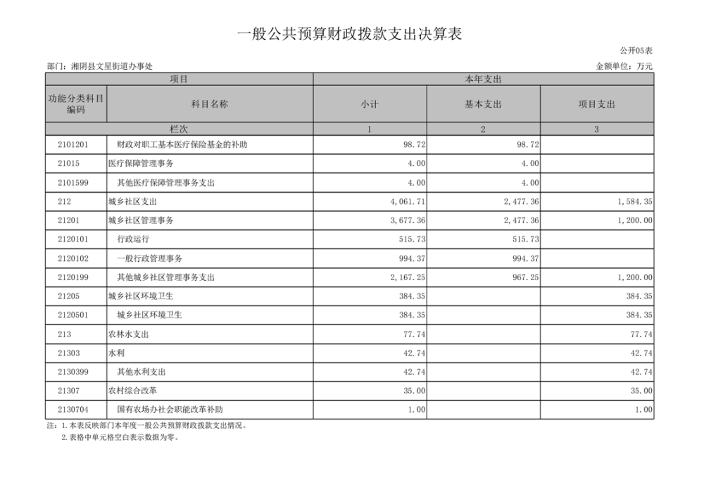 湘阴县文星街道办事处-2022年度-决算公开