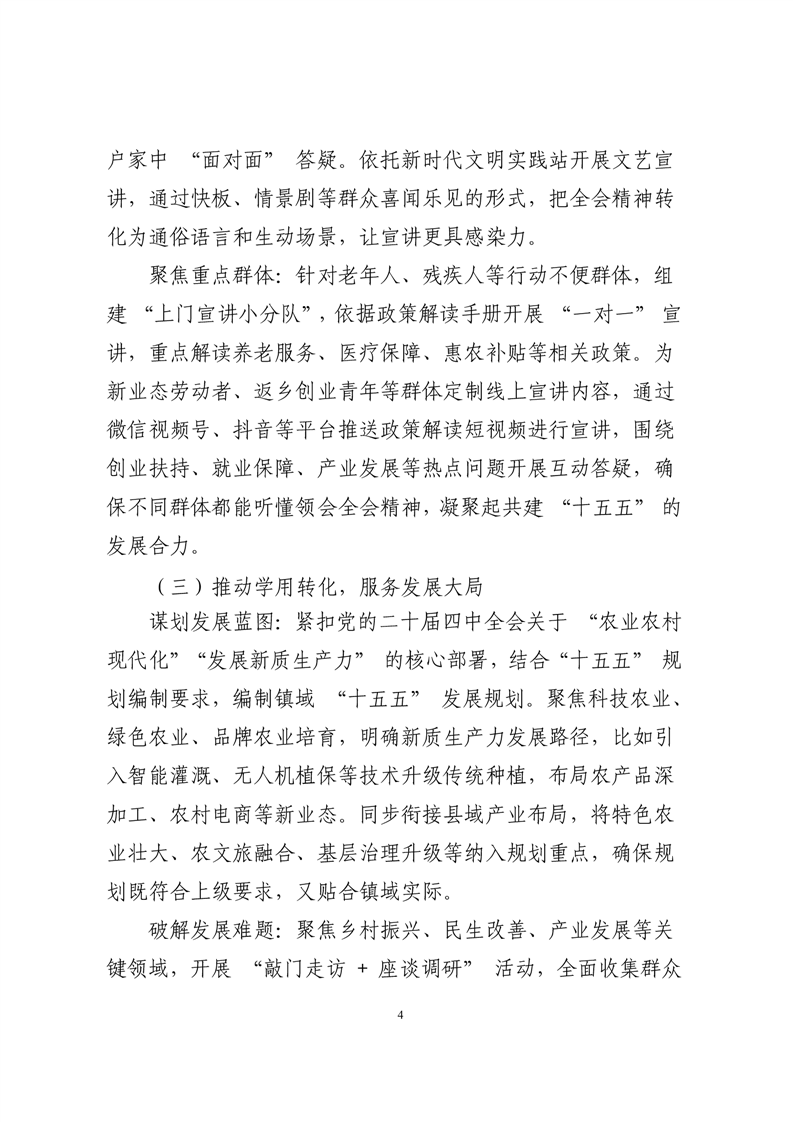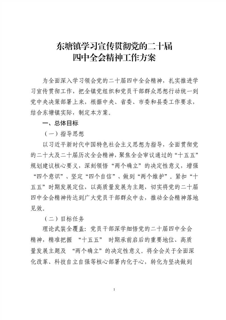 东塘镇学习宣传贯彻党的二十届四中全会精神工作方案