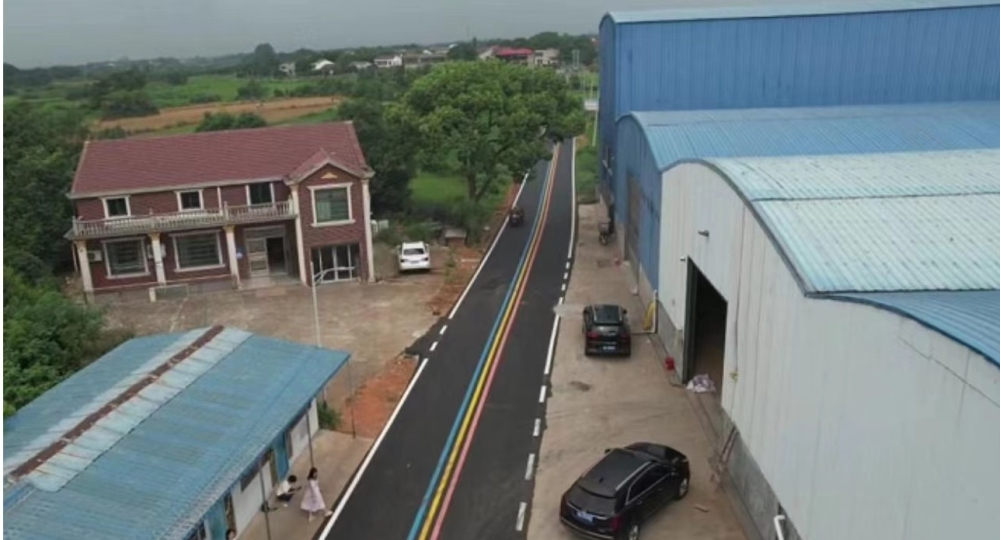 这条“彩虹路”位于杉塘坪村牛大线至曾家七组c242连接路,是村民通往集镇的必经之路。该道路全长1.5km,新建路段为0.5km,宽5m,由乡贤李望高投资100万领建,于今年6月12日开始动工,历时两个月完工。道路经改造提升后,不仅为村民出行提供了坚实的交通基础,道路颜值也一路攀升,为乡村振兴的美好蓝图添上一抹绚丽的色彩。在原有水泥混凝土路面上加铺沥青,施划彩色标线,不仅使交通出行更加通畅,村镇面貌更加靓丽,也让乡村振兴有了更多的‘打开方式’。