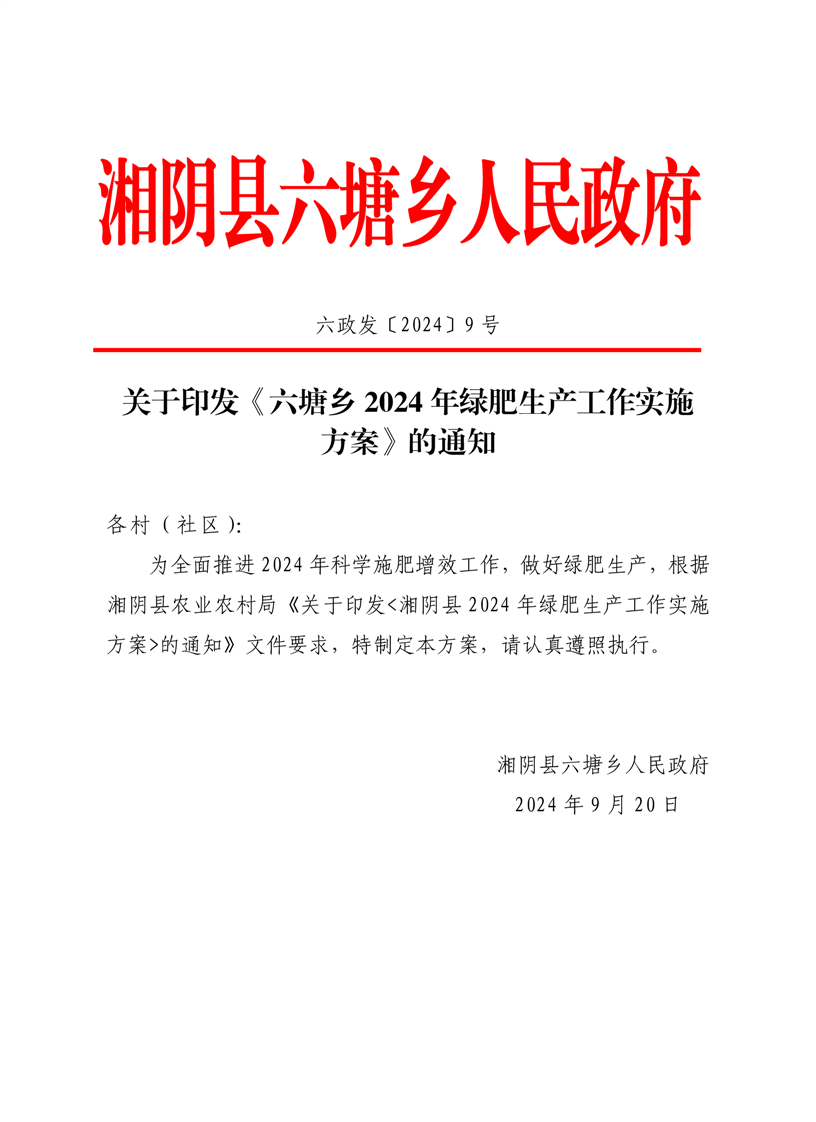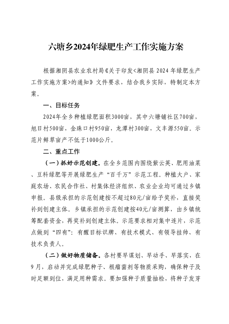 关于印发《六塘乡2024年绿肥生产工作实施方案》的通知