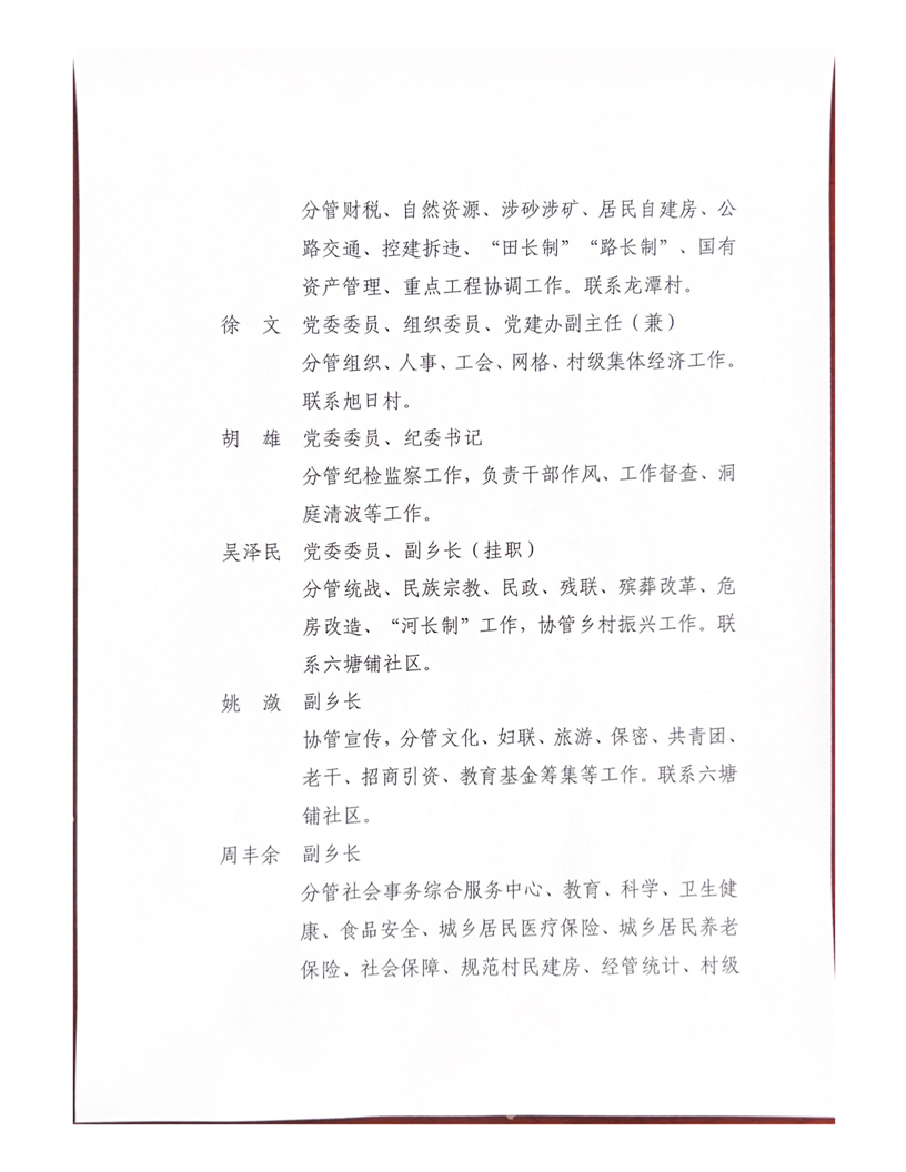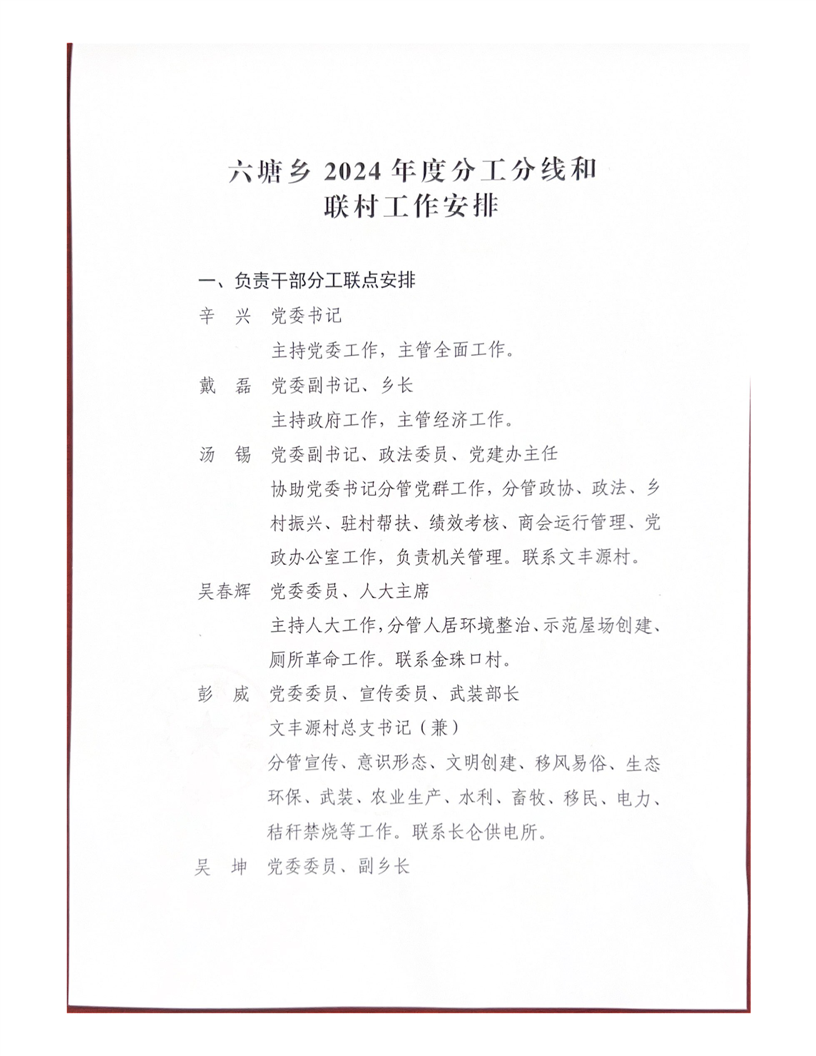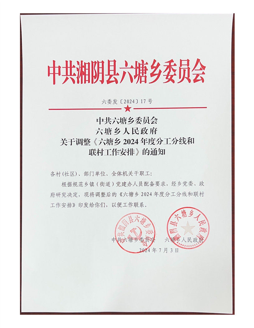 关于调整《六塘乡2024年度分工分线和联村工作安排》的通知