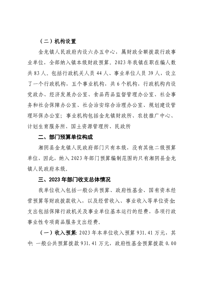 湘阴县金龙镇人民政府-2023年度-部门预算