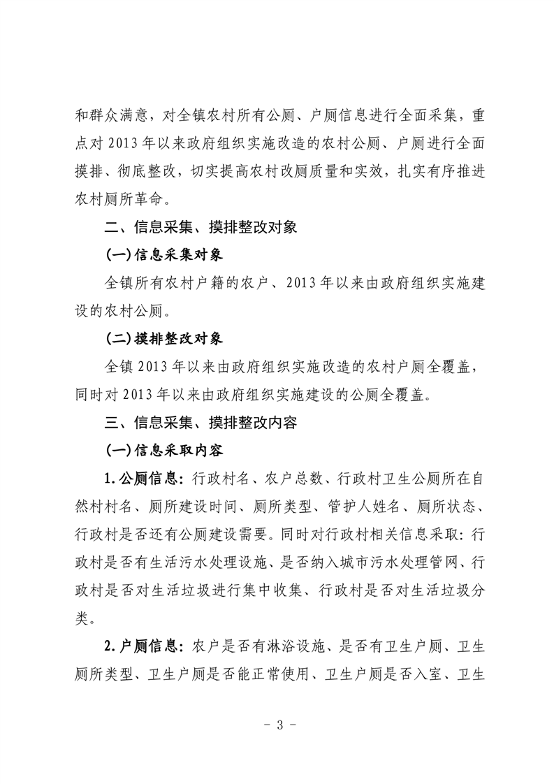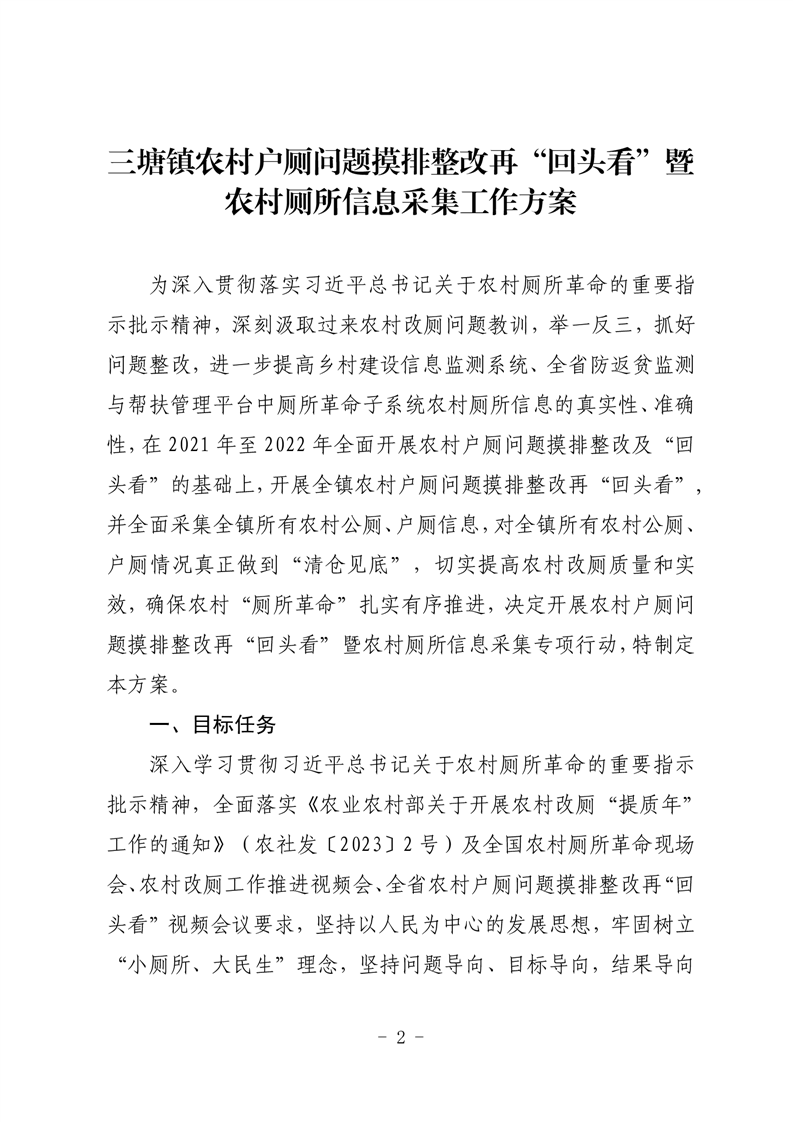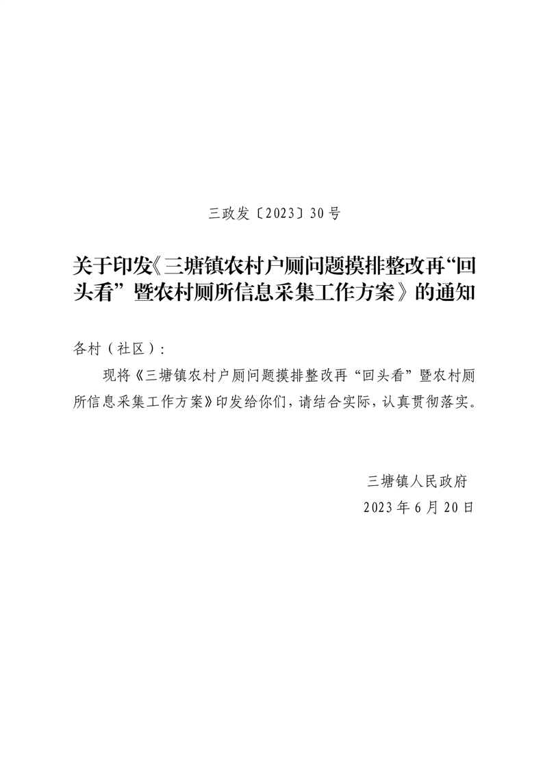 关于印发《三塘镇农村户厕问题摸排整改再“回头看”暨农村厕所信息采集工作方案》的通知