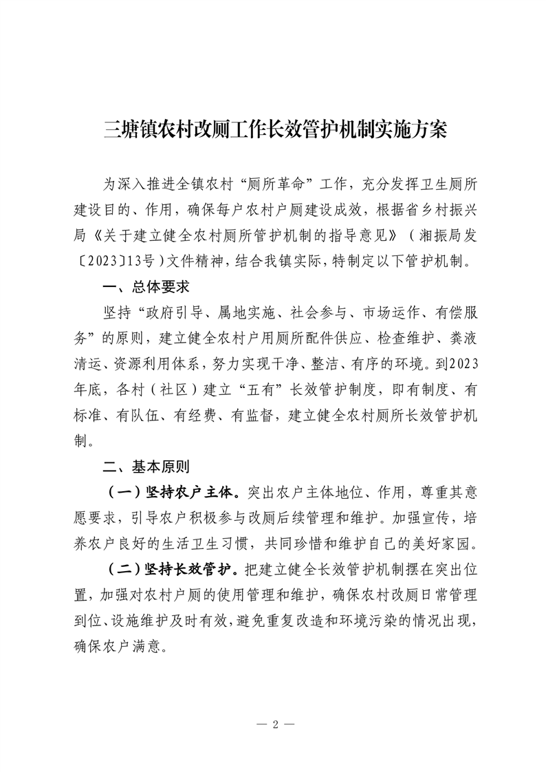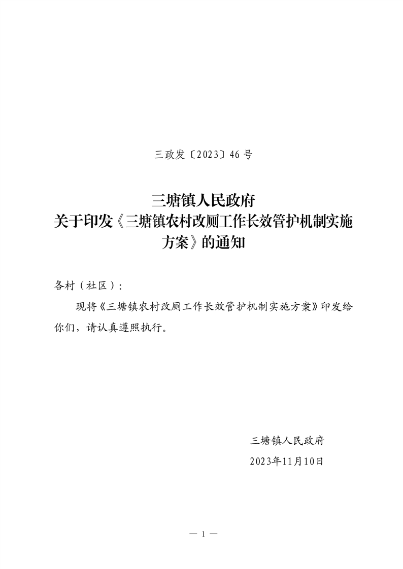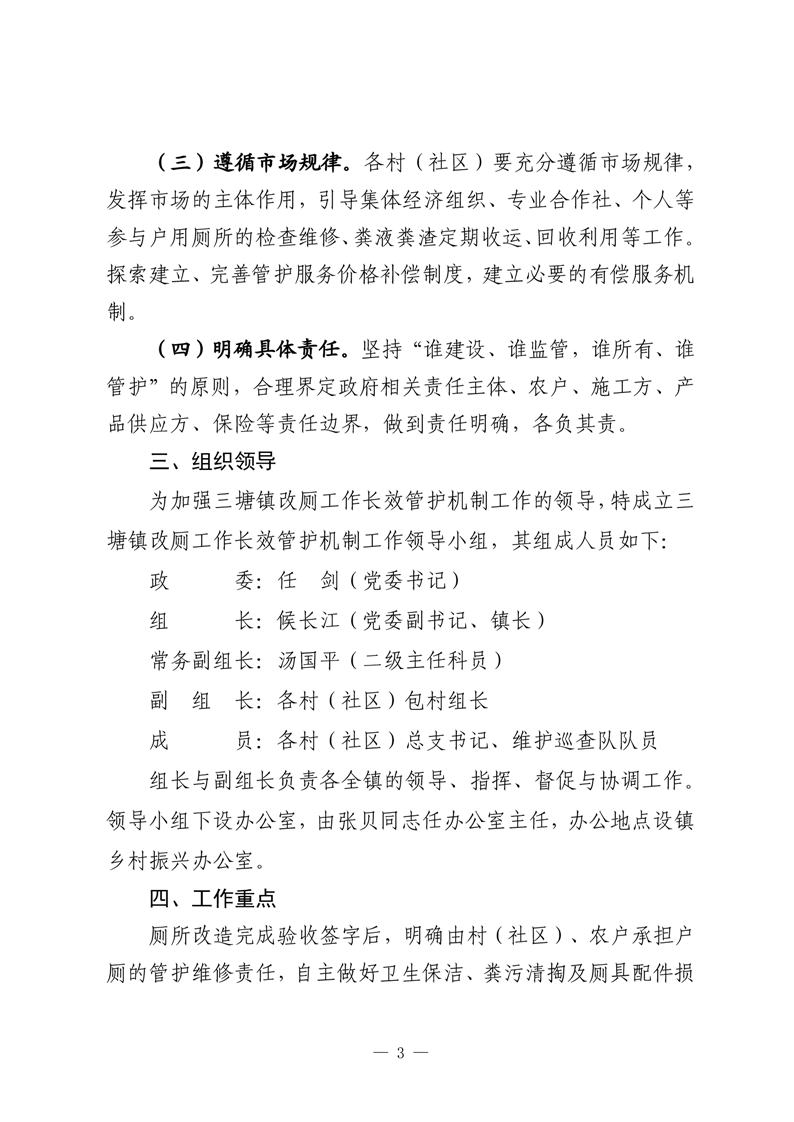 关于印发《三塘镇农村改厕工作长效管护机制实施方案》的通知