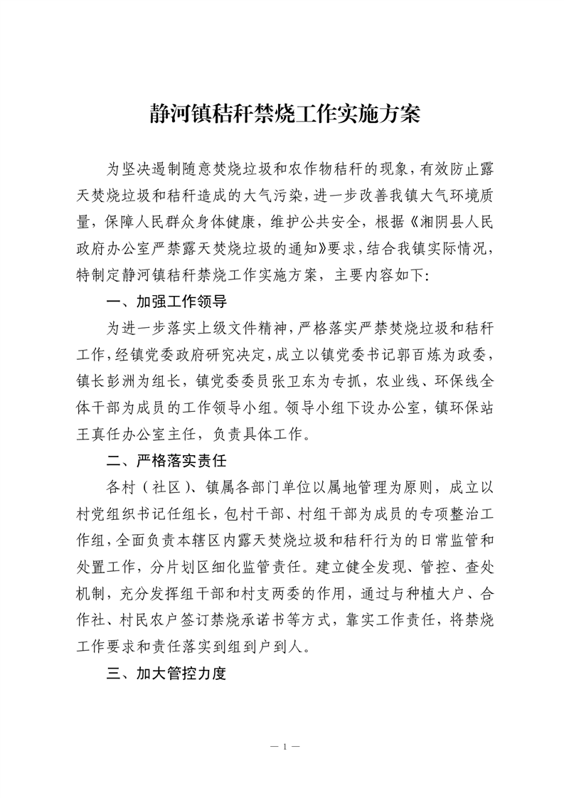 静河镇秸秆禁烧工作实施方案