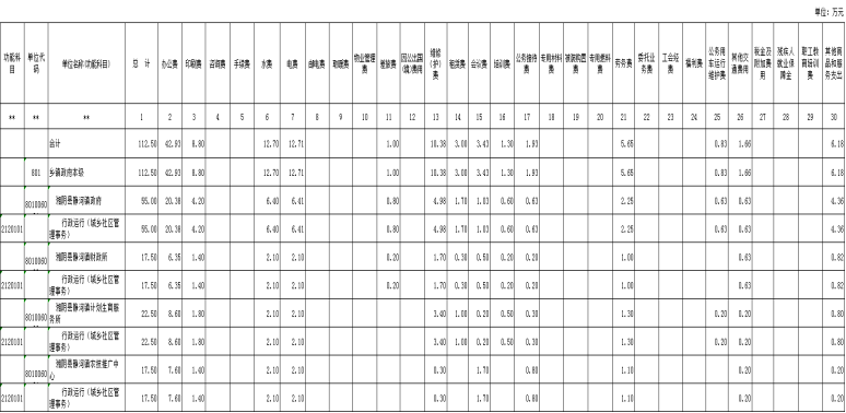 1、机关运行经费:是指各部门的公用经费,包括办公及印刷费、邮电费、差旅费、会议费、福利费、日常维修费、专用资料及一般设备购置费、办公用房水电费、办公用房取暖费、办公用房物业管理费、公务用车运行维护费以及其他费用。