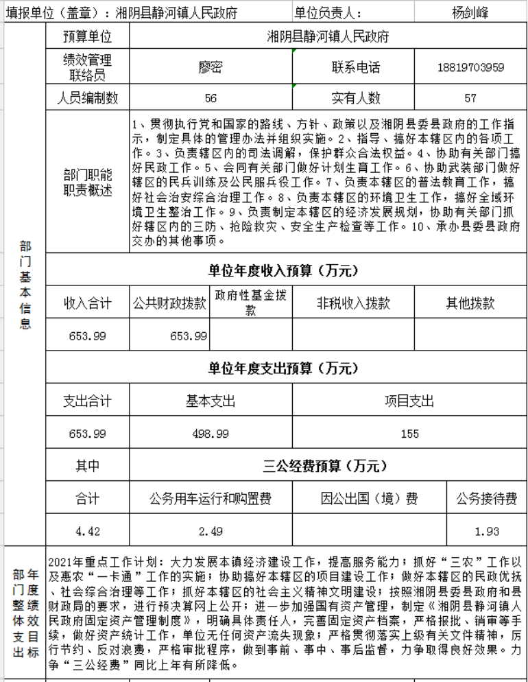 第一部分 湘阴县静河镇人民政府2021年部门预算说明