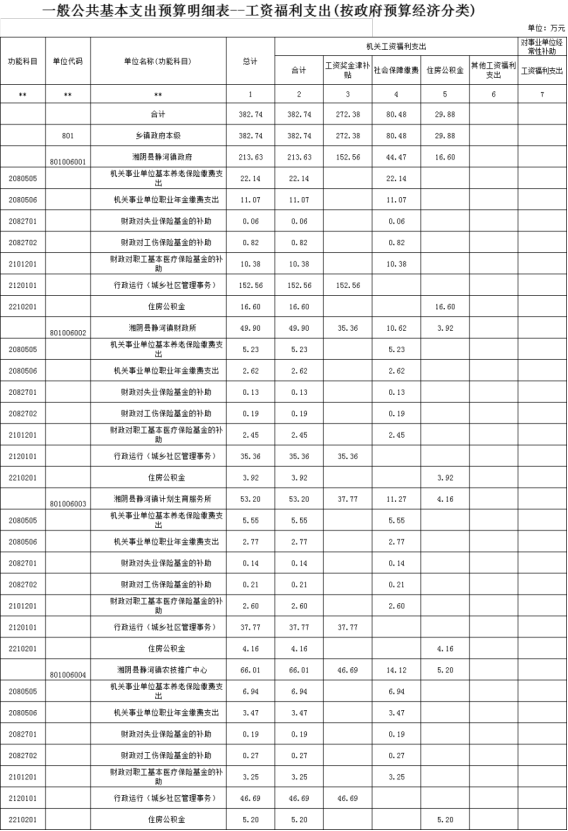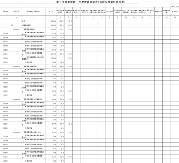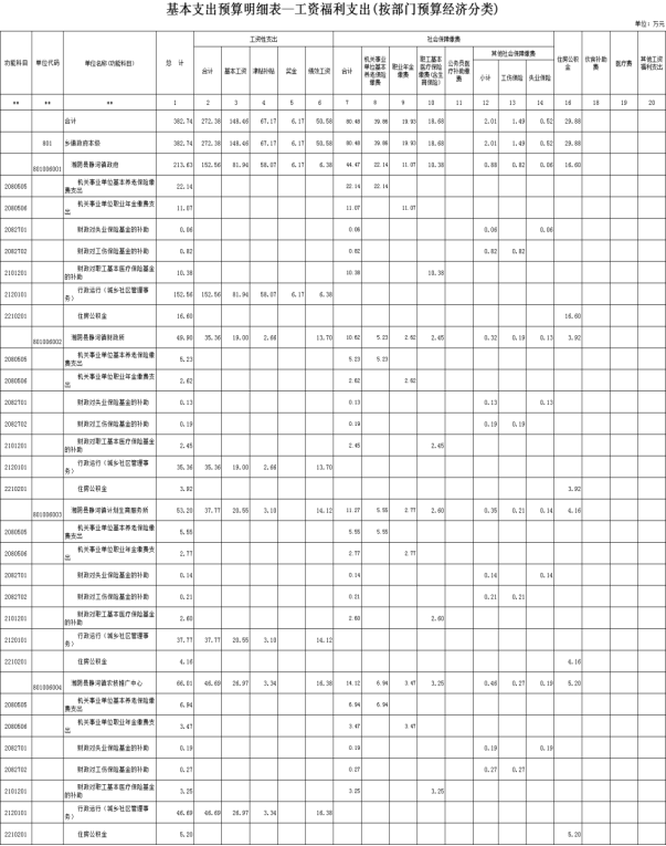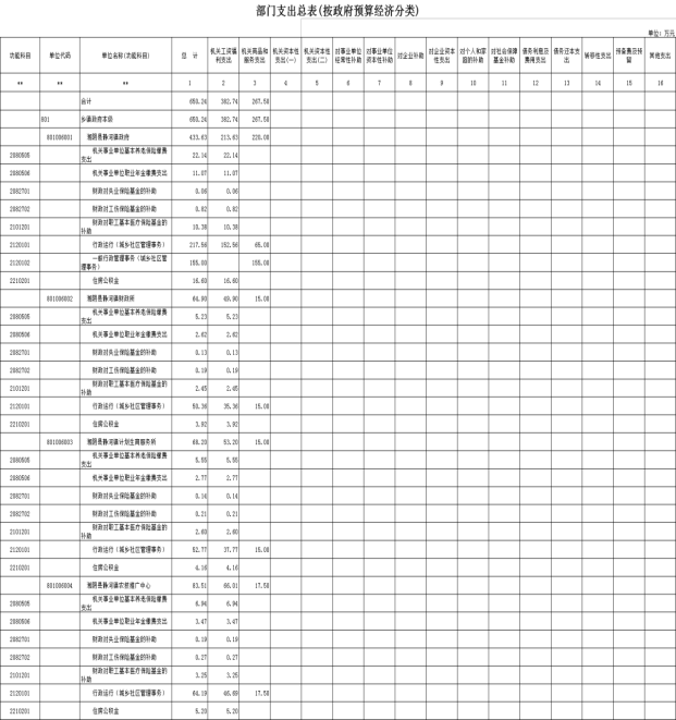 十六、一般预算拨款——工资福利支出预算表(按政府预算经济分类)