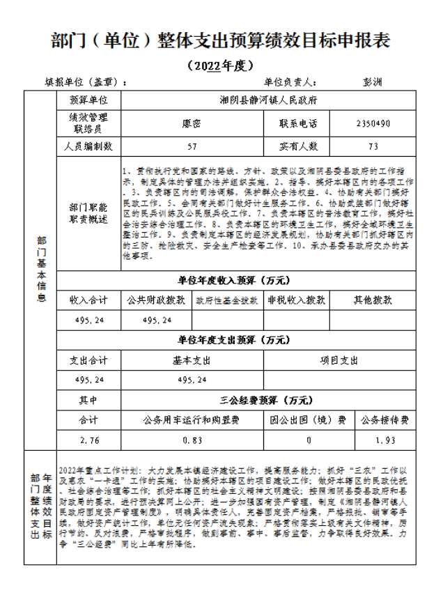 第一部分 湘阴县静河镇人民政府2022年部门预算说明