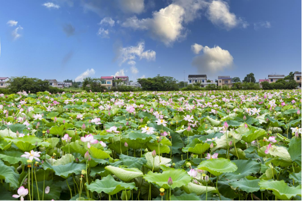 3.产业带动模式。自2018年来,该村全力优化进行产业结构调整,截至目前共发展莲藕种植180亩,太空莲种植100亩。