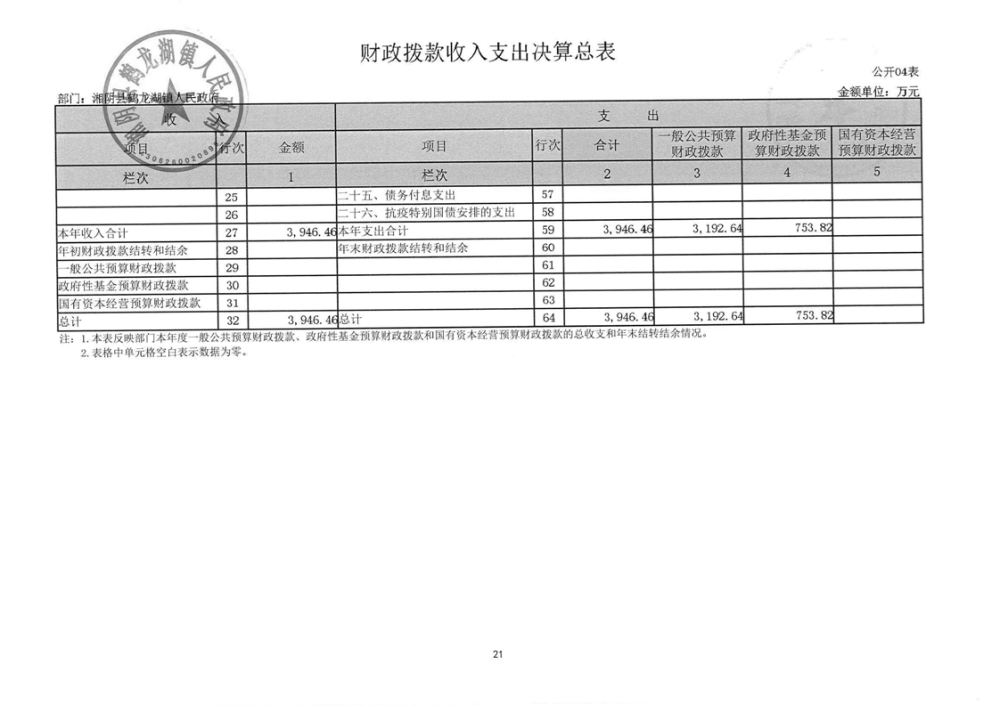 湘阴县鹤龙湖镇人民政府-2022年度-部门决算