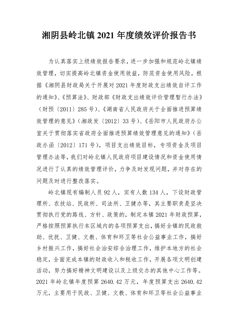 2021年度-湘阴县岭北镇人民政府-决算公开