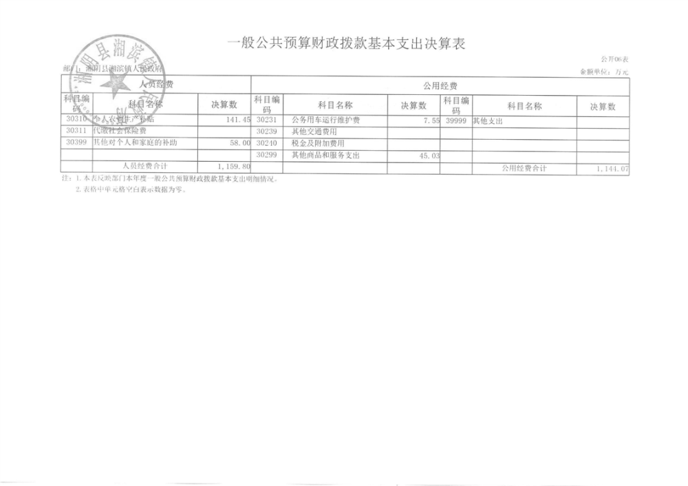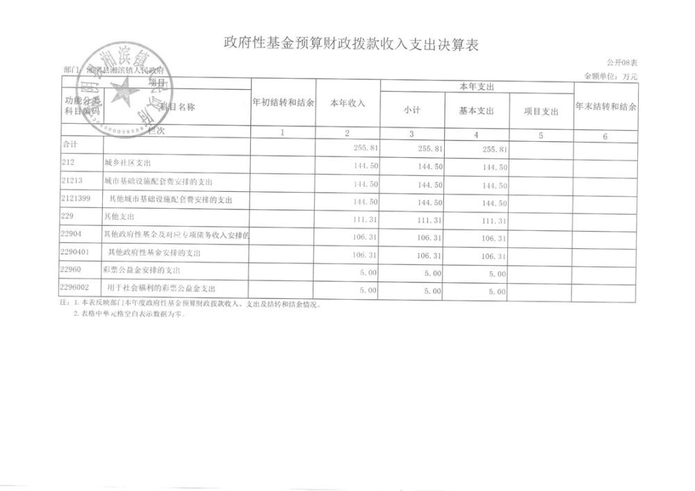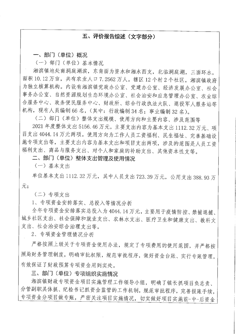 湘阴县湘滨镇人民政府-2021年度-部门决算公开