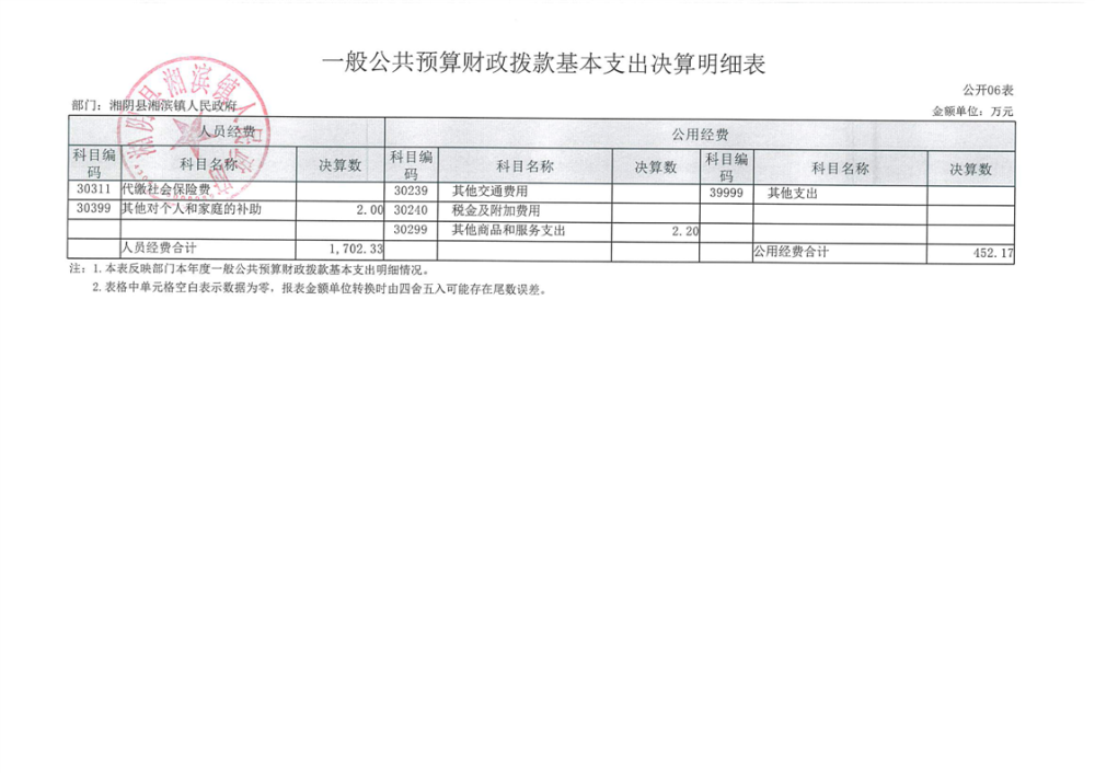 湘阴县湘滨镇人民政府-2023年度-部门决算