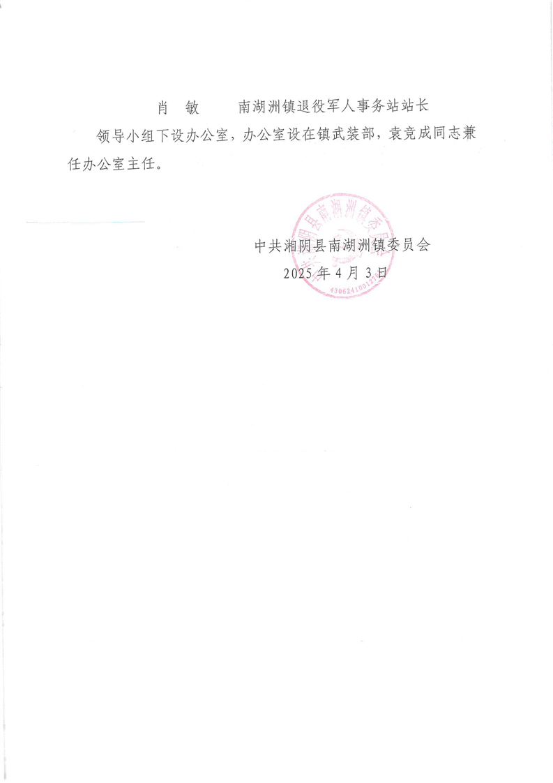 关于成立南湖洲镇民兵连长整改工作领导小组的通知