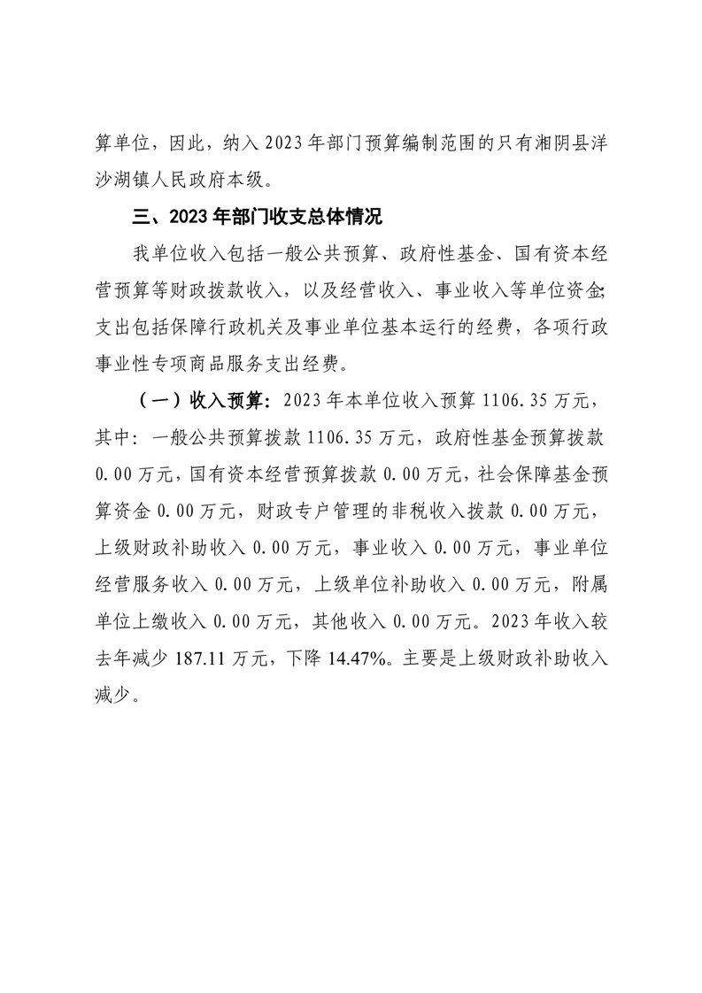 2023年-湘阴县洋沙湖镇人民政府-部门预算