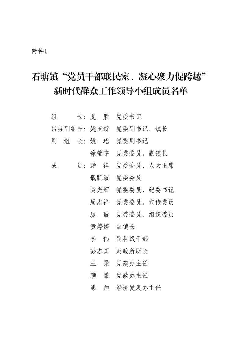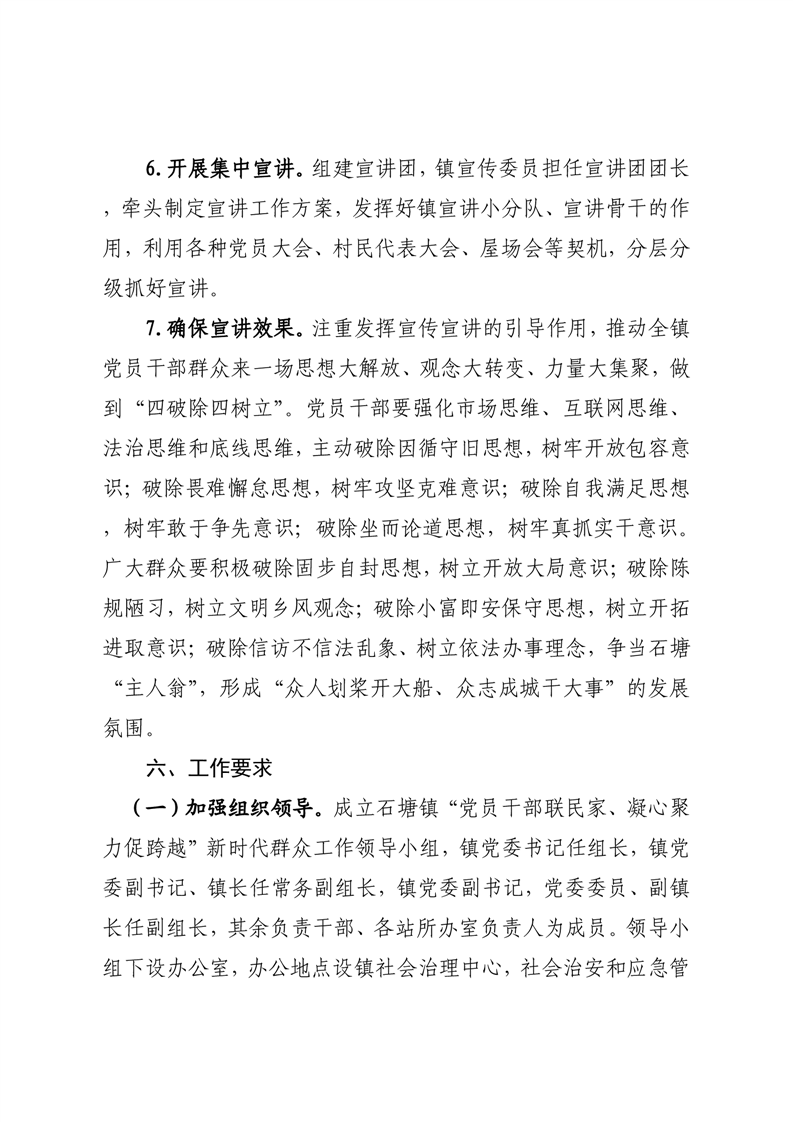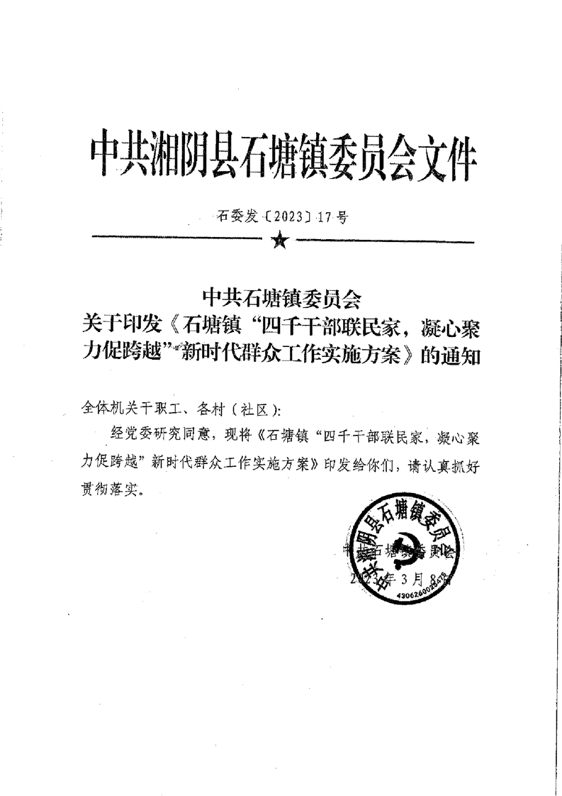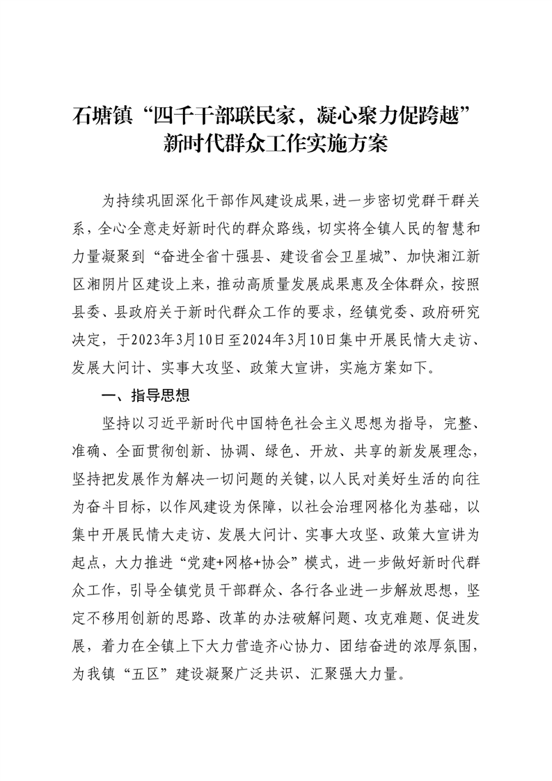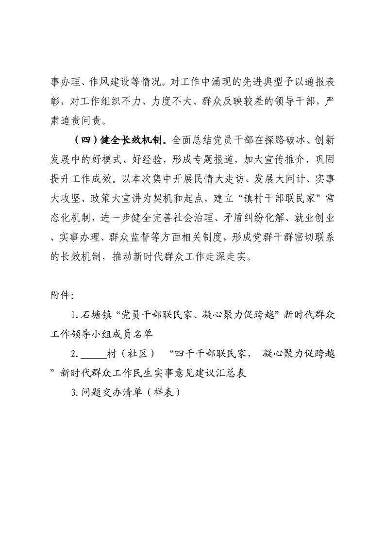 石塘镇“四千干部联民家,凝心聚力促跨越”新时代群众工作方案