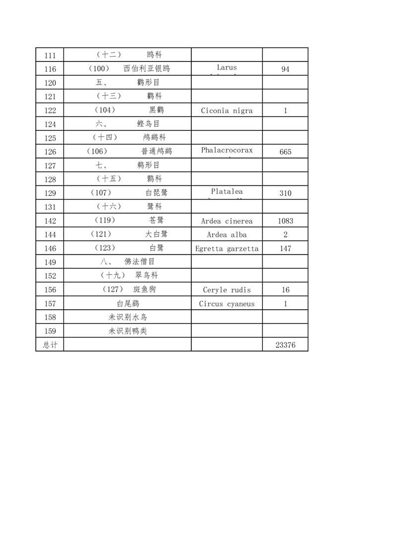 横岭湖省级自然保护区2025年3月18日水鸟监测物种统计表