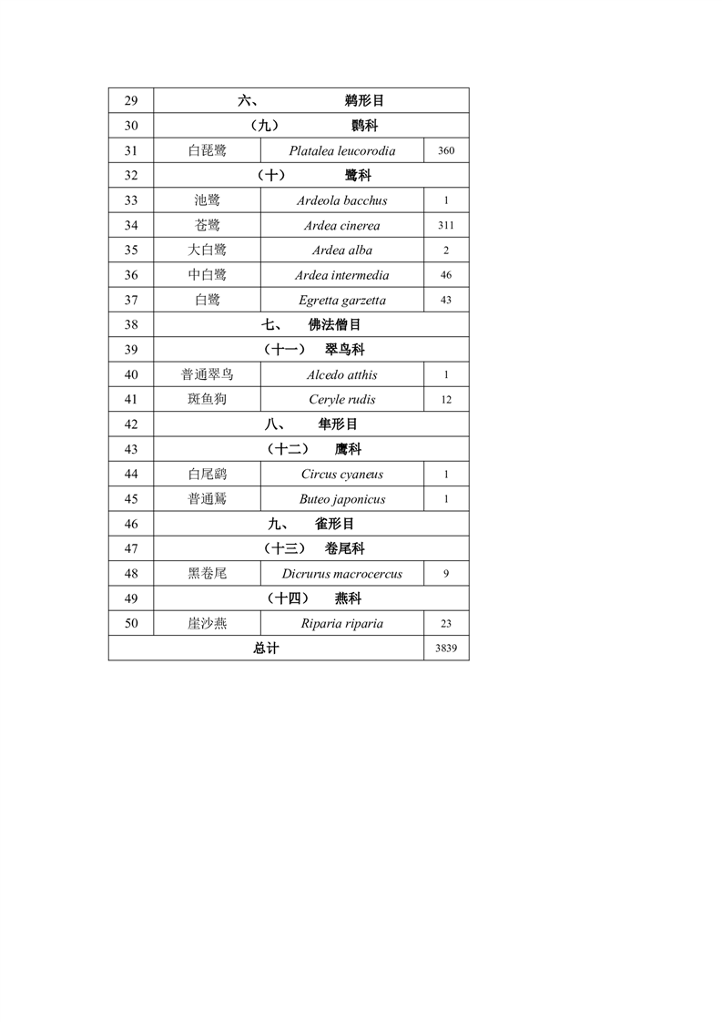 横岭湖省级自然保护区2025年10月18日水鸟同步监测物种统计表