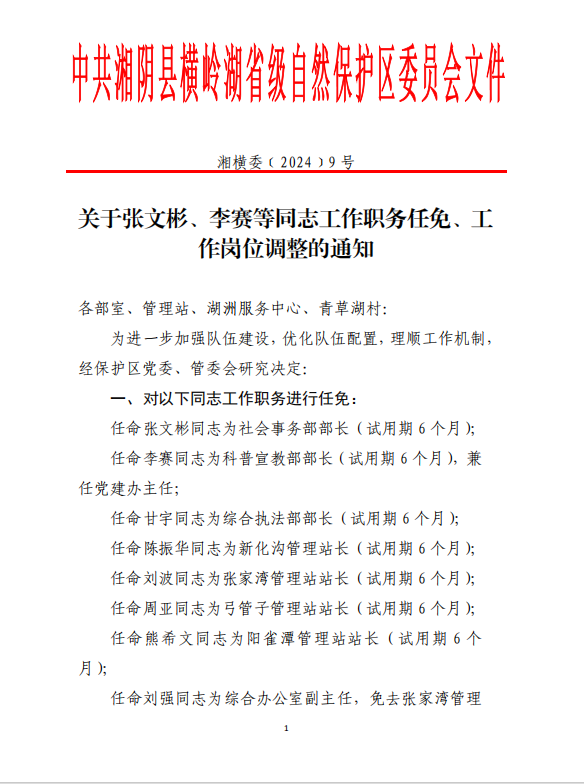 关于张文彬、李赛等同志工作职务任免、工作岗位调整的通知