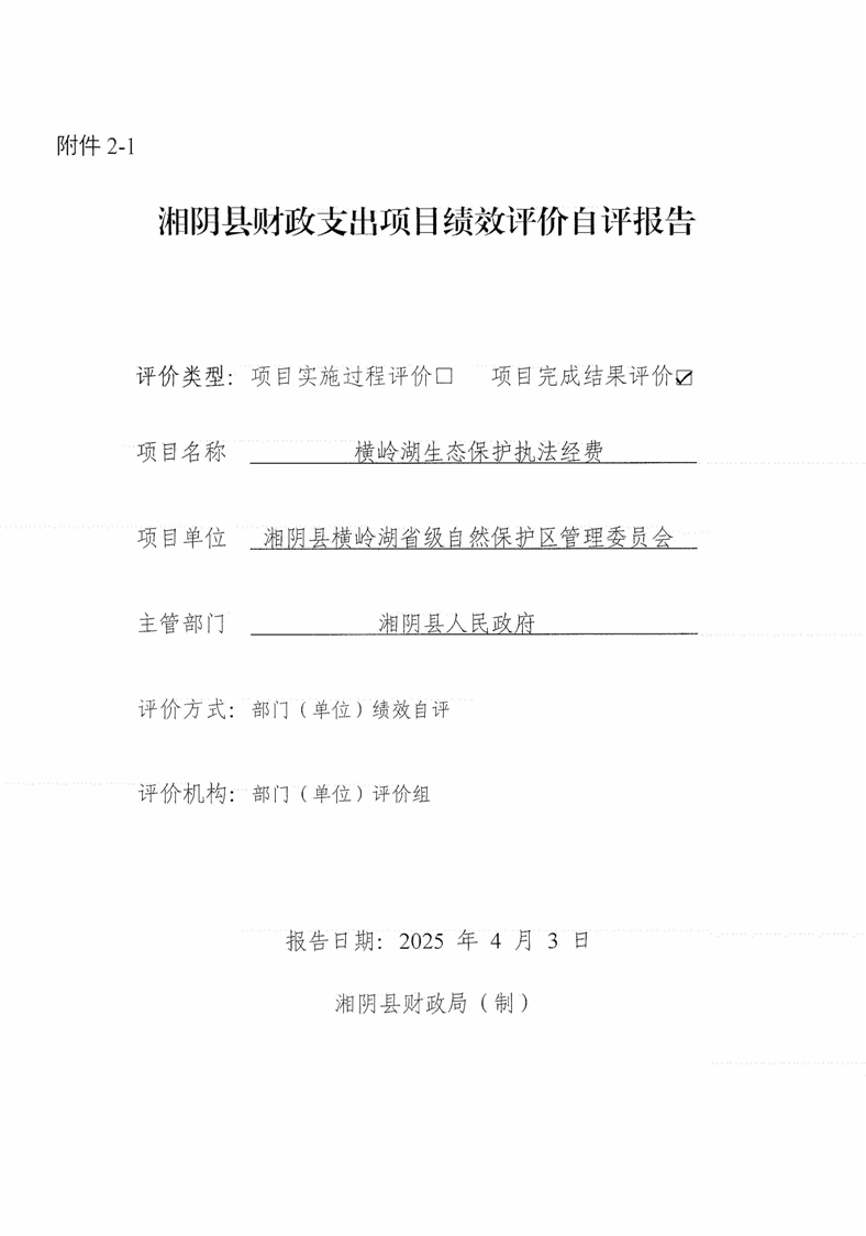 2024年度-湘阴县横岭湖省级自然保护区管理委员会-整体支出绩效评价自评报告