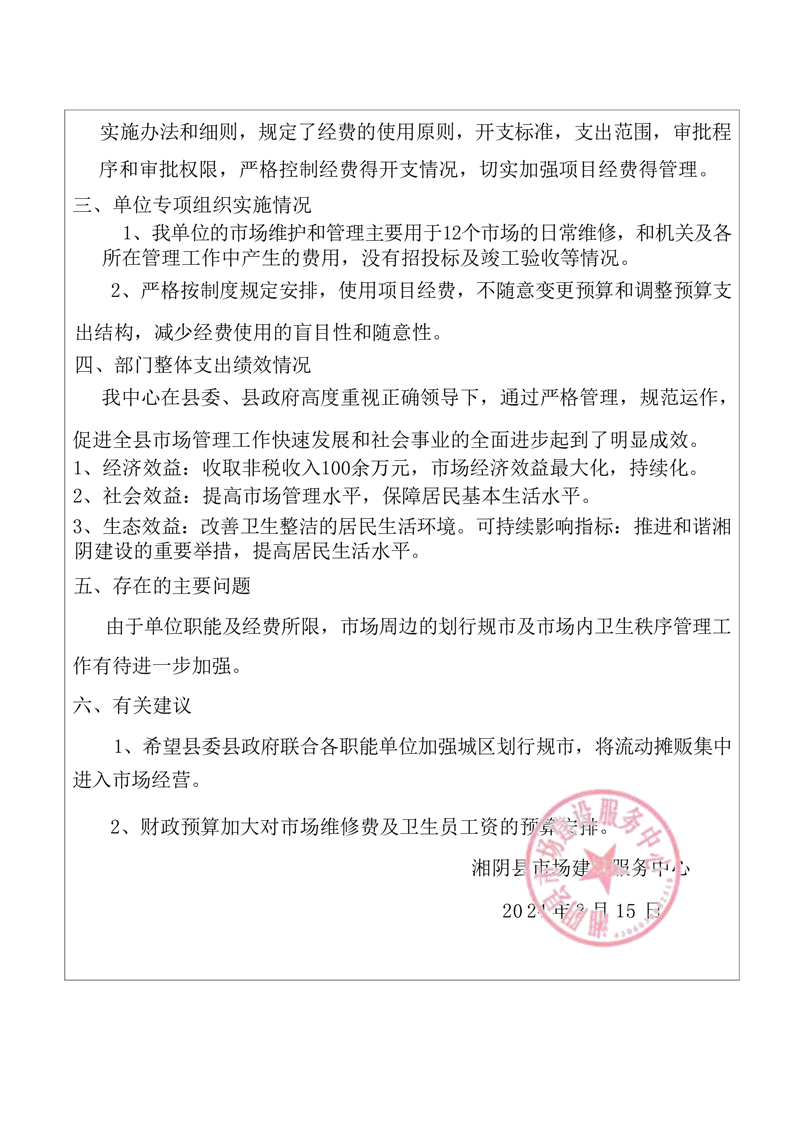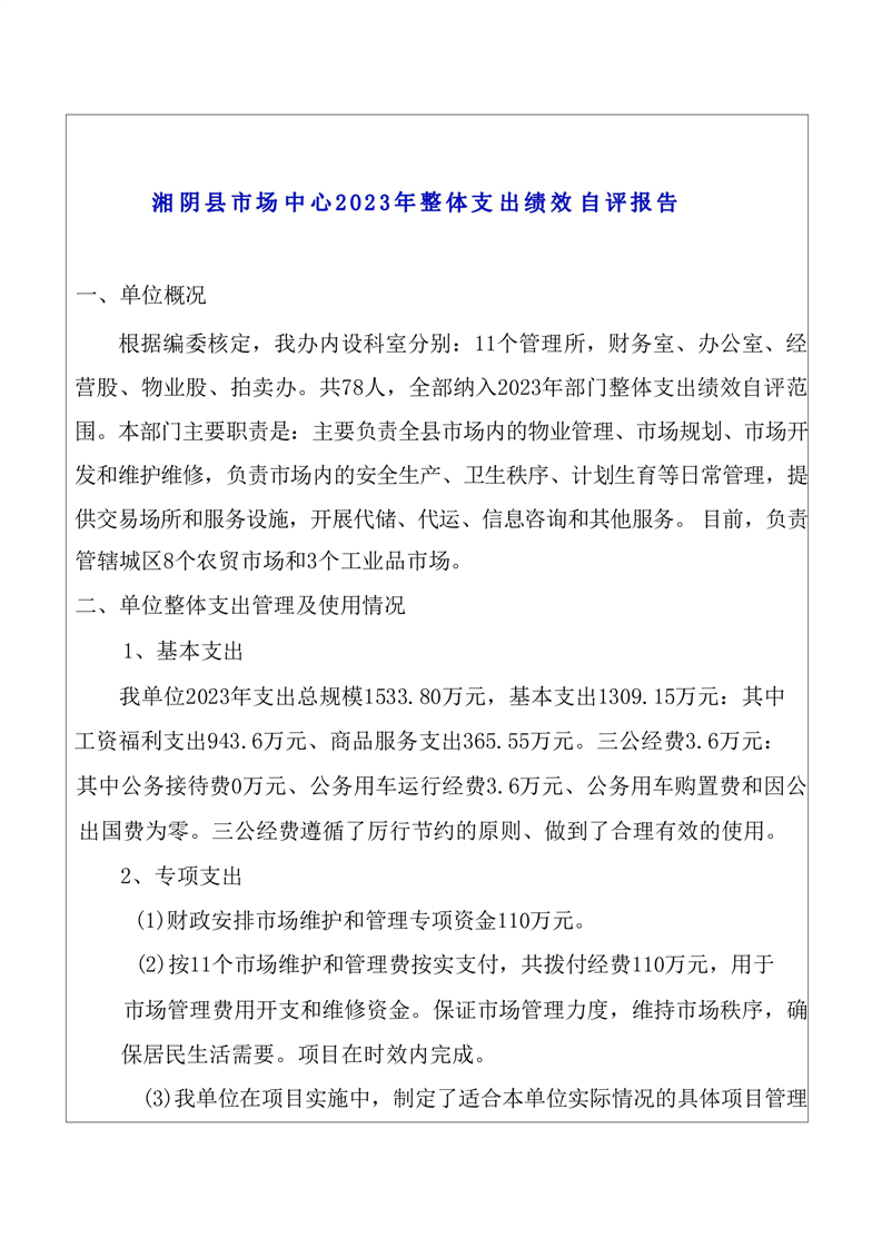 2023年-湘阴县市场建设服务中心-部门决算公开