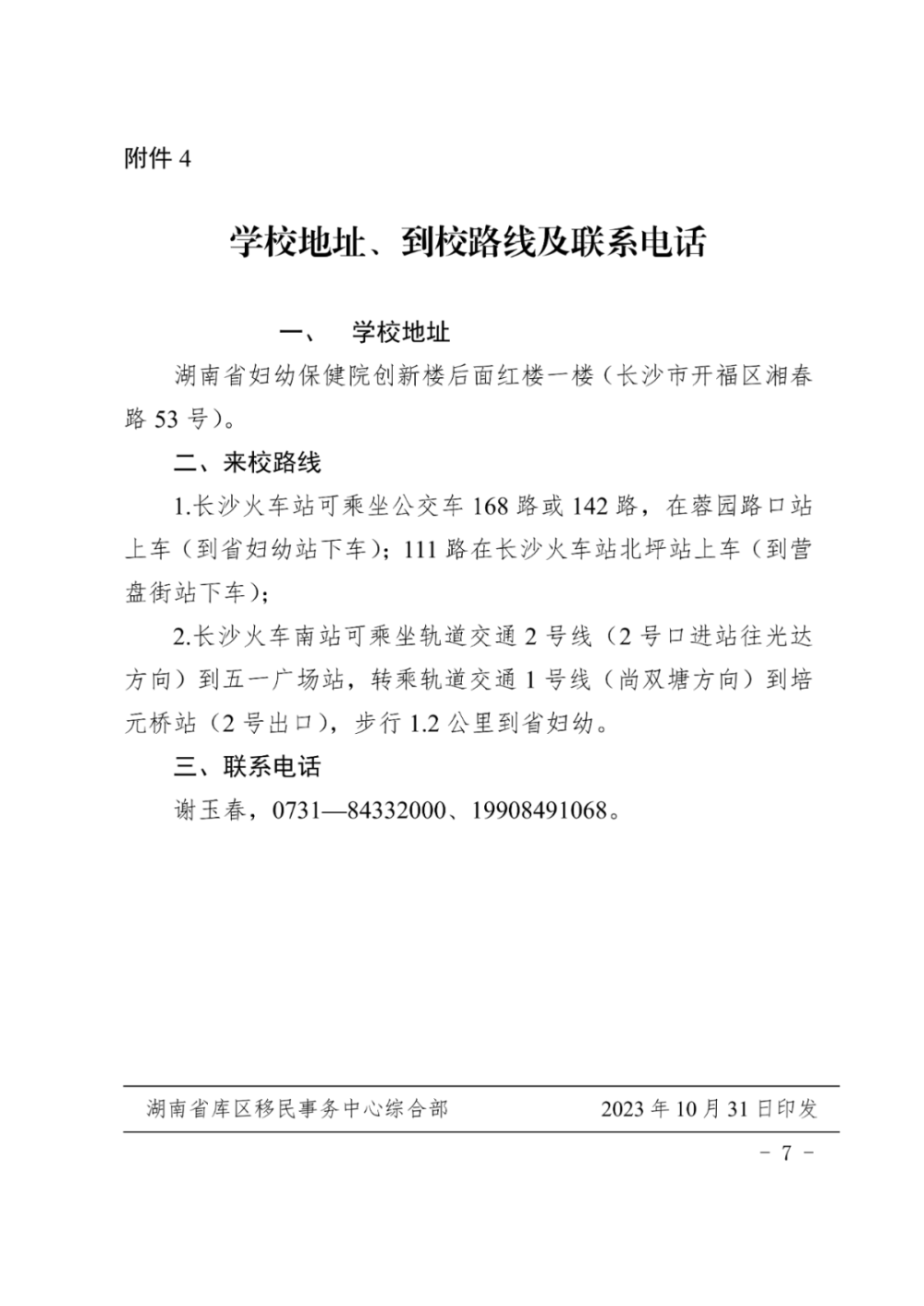 4.学校地址、到校路线及联系电话