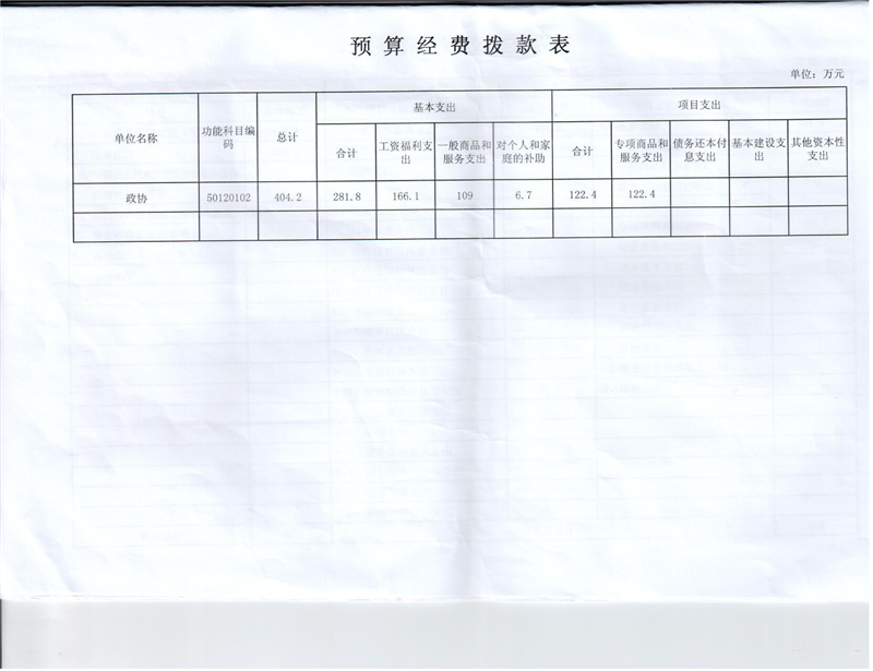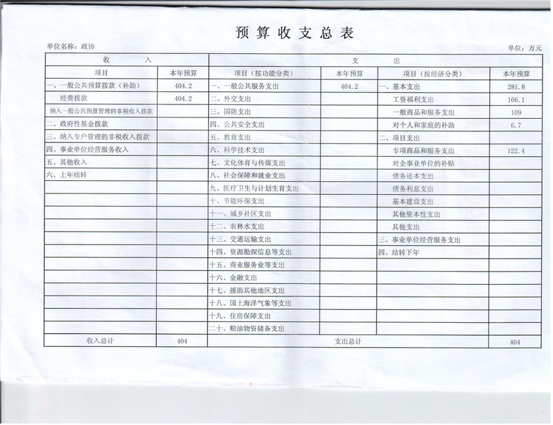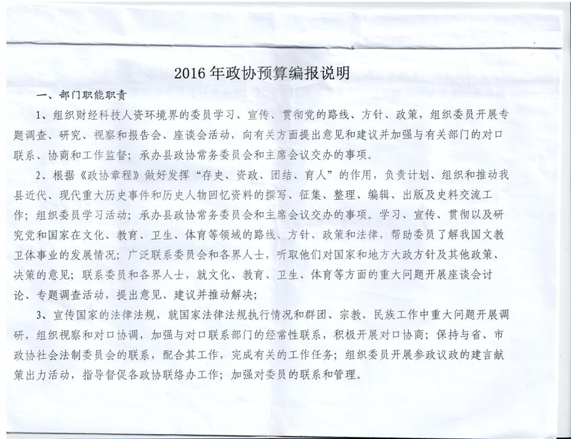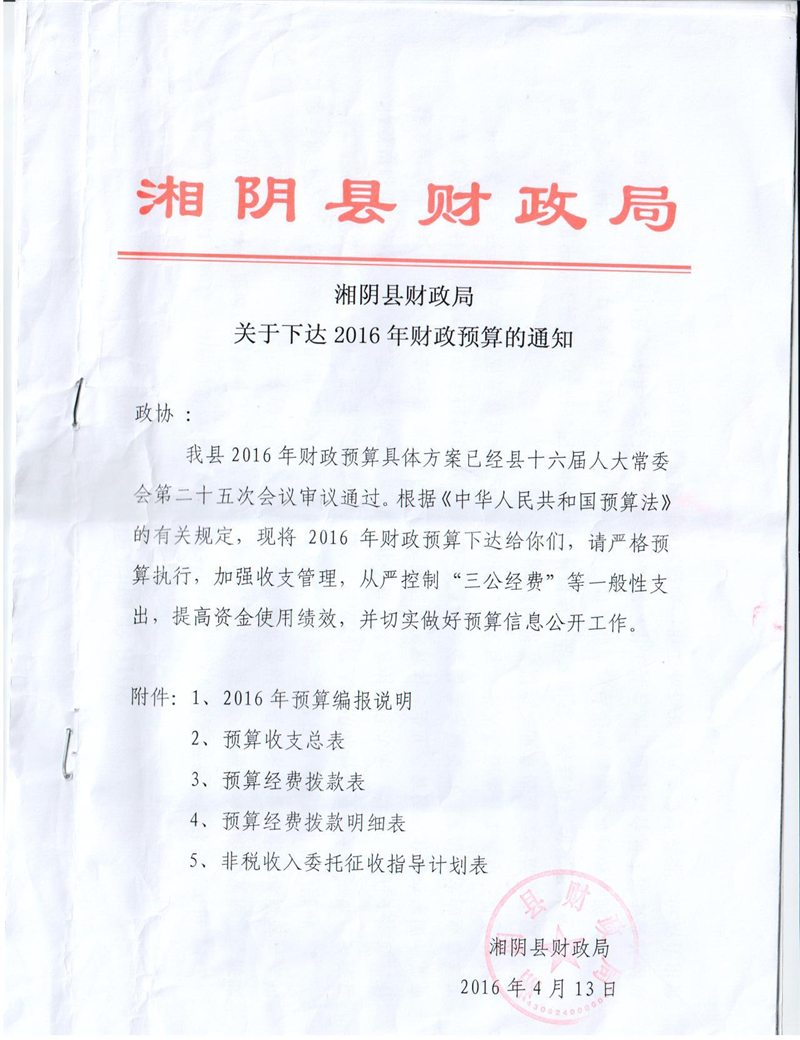湘阴县政协2016年部门预算公开