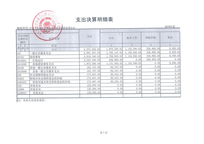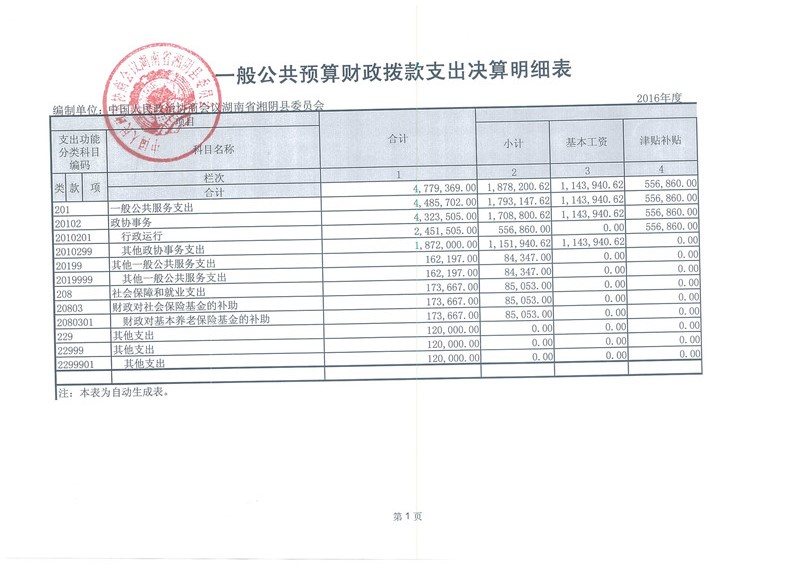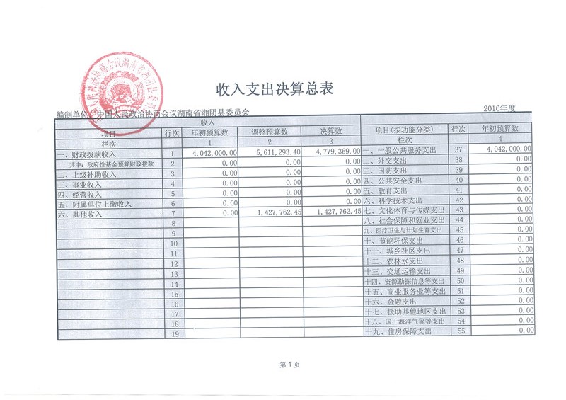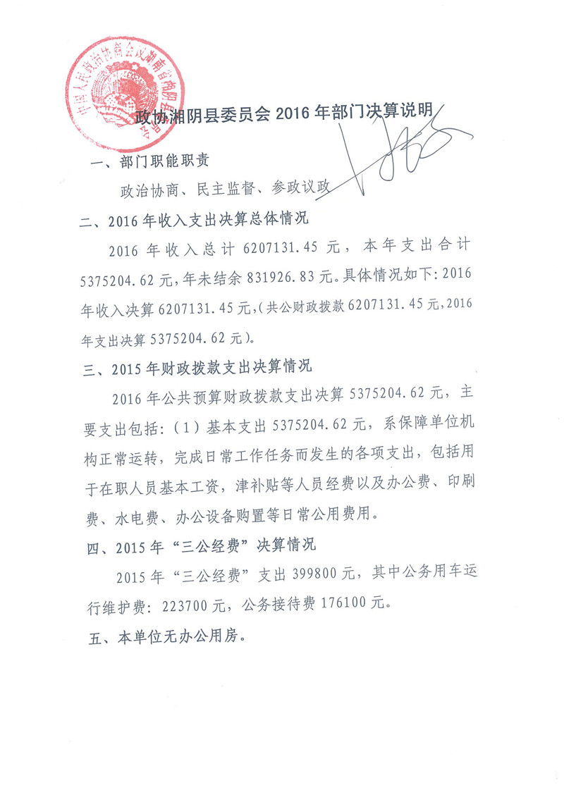 湘阴县政协2016年部门决算
