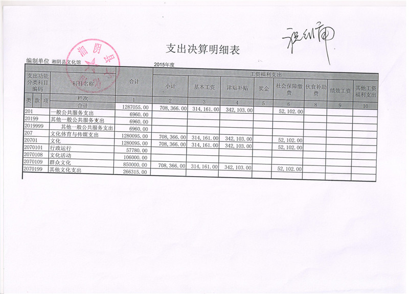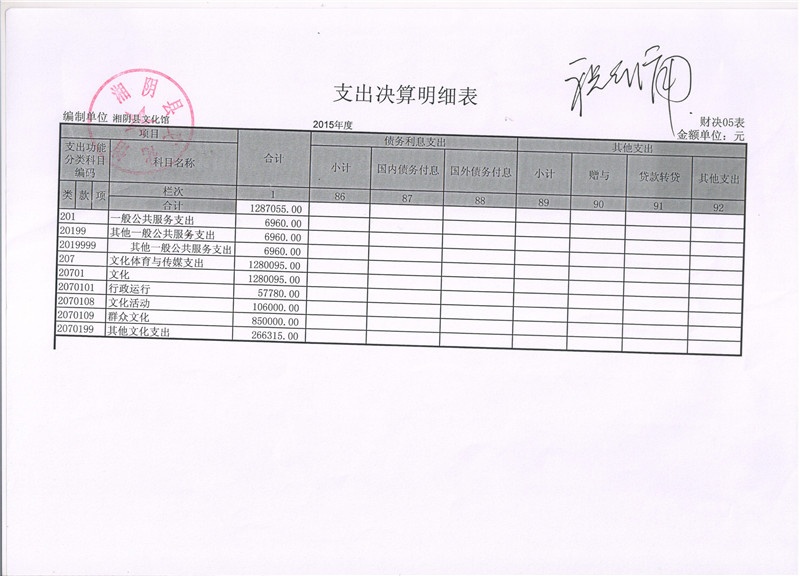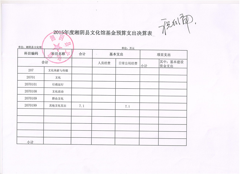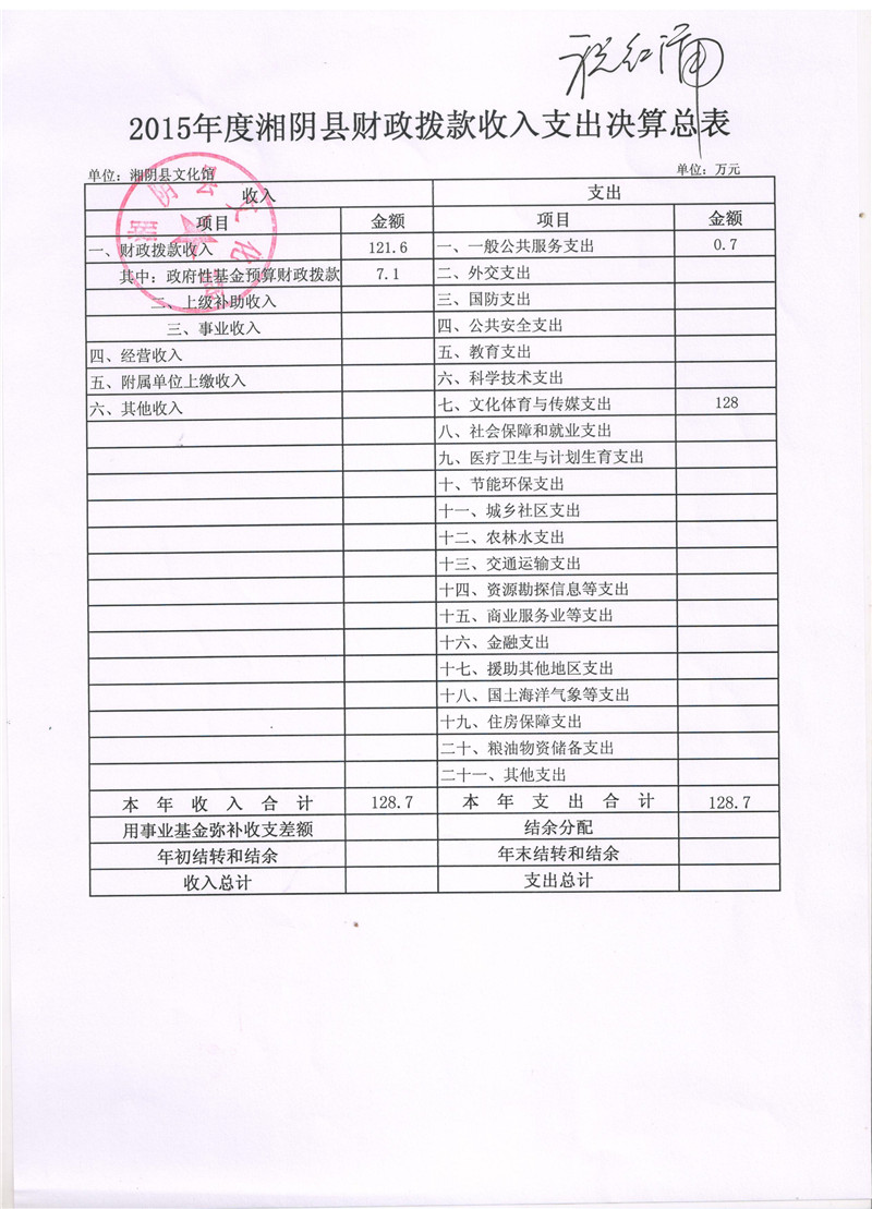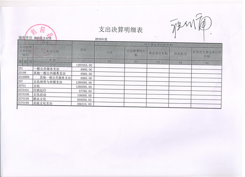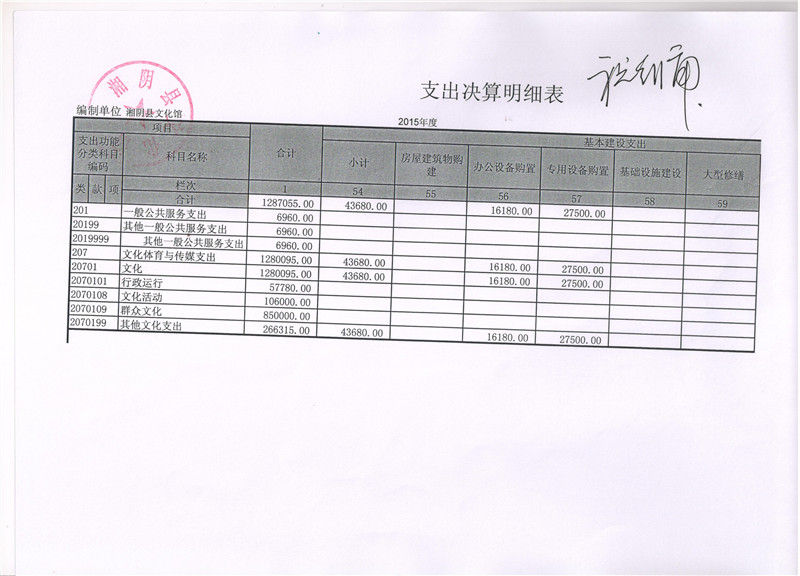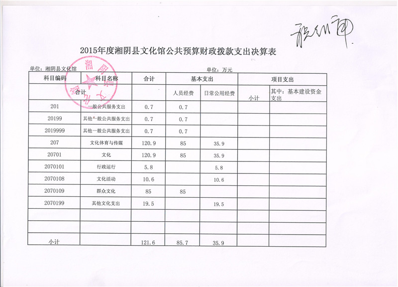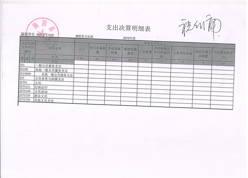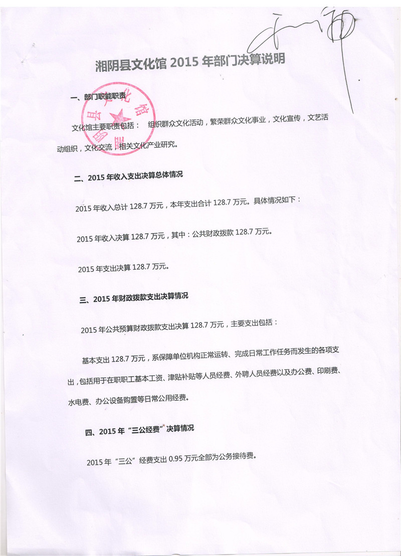 2015年度湘阴县文化馆“三公”经费决算公开表
