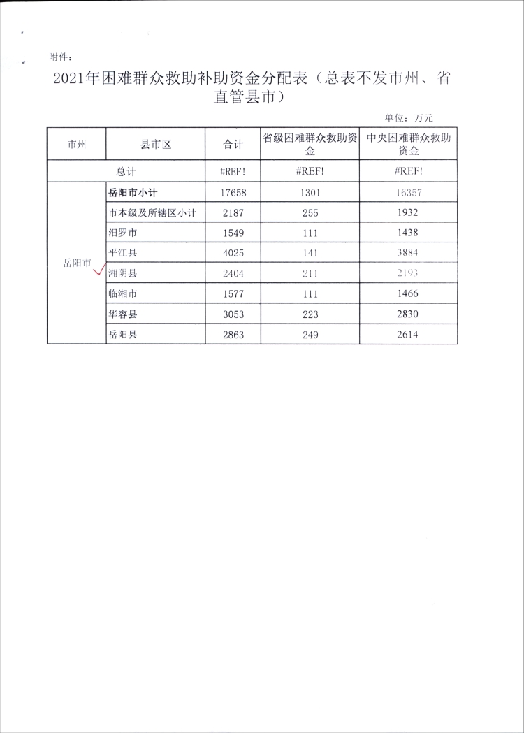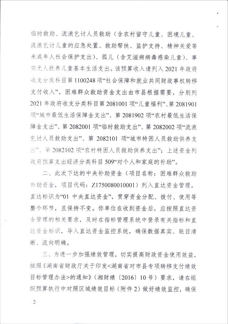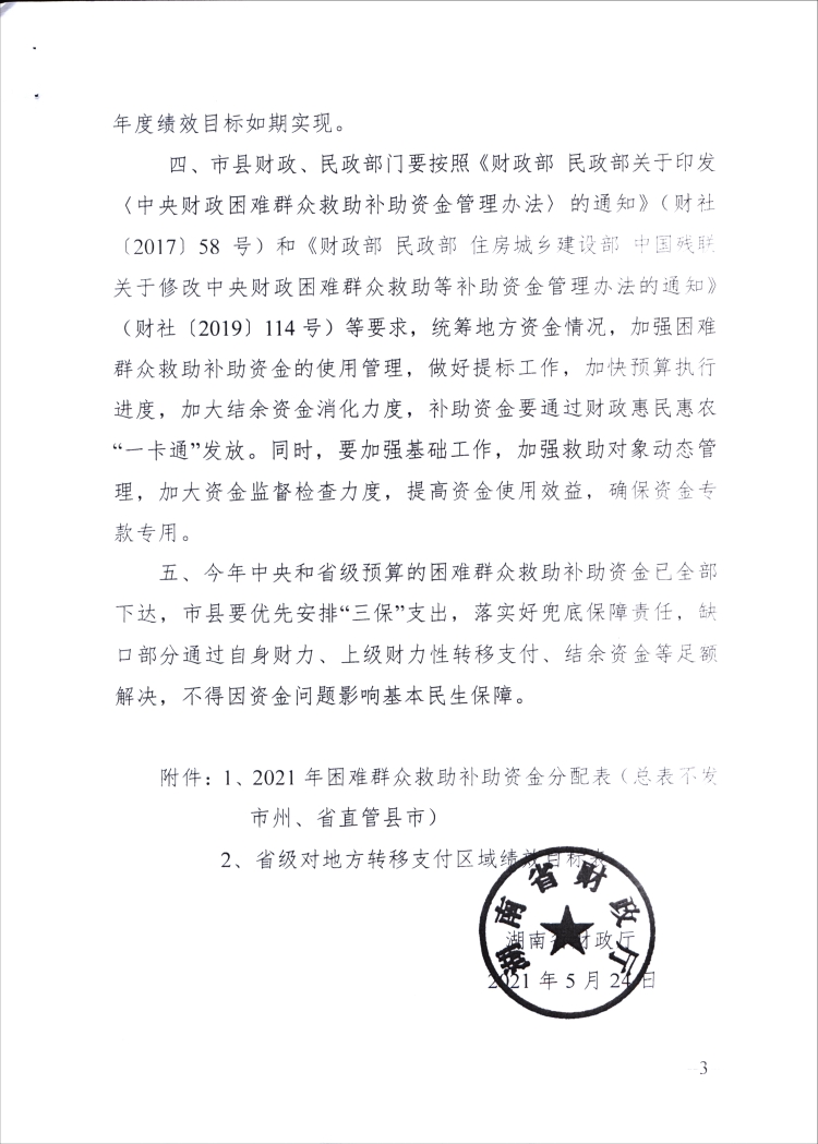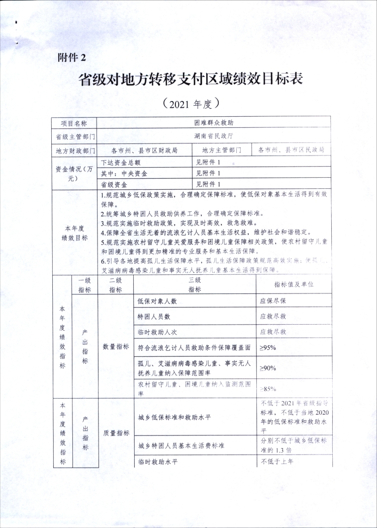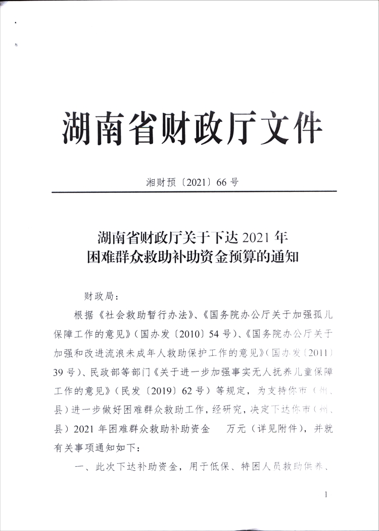 湖南省财政厅关于下达2021年困难群众救助补助资金预算的通知