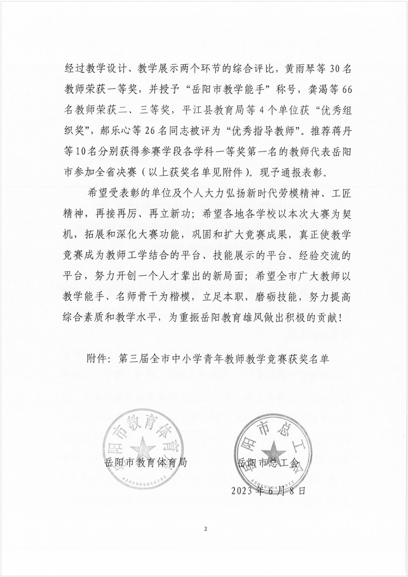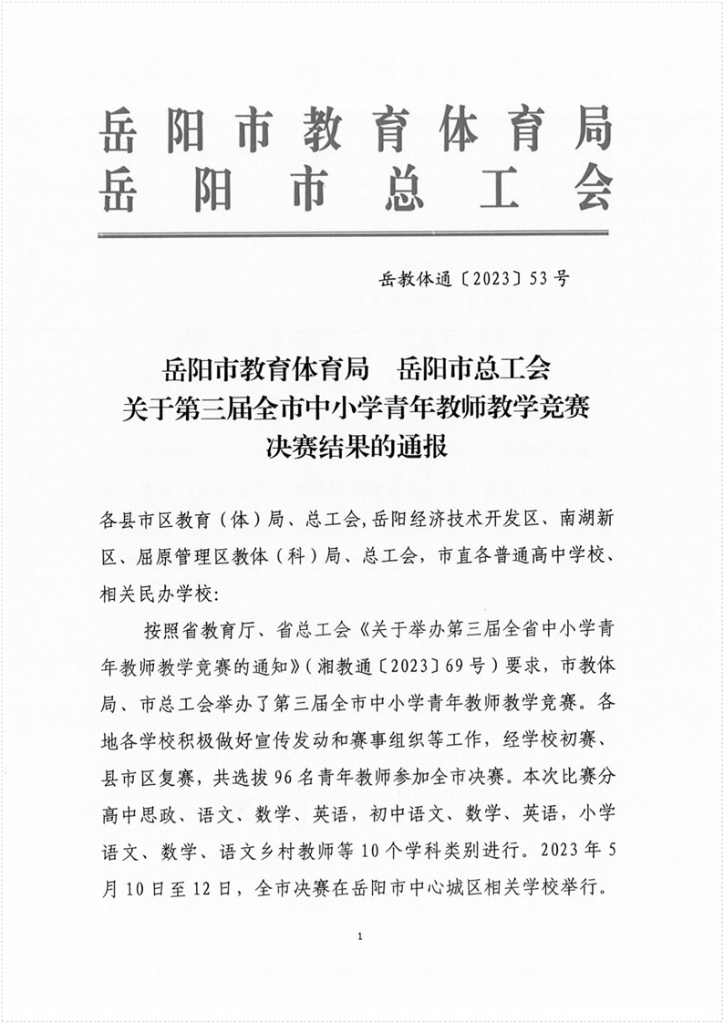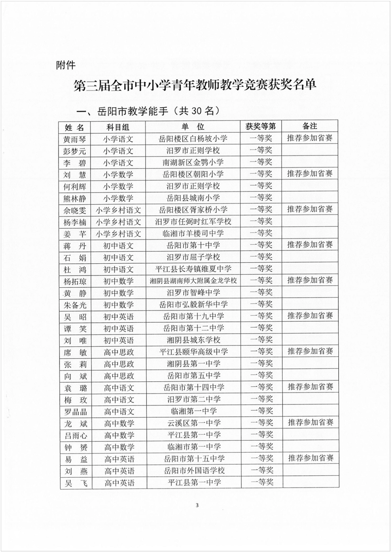 第三届全市中小学青年教师教学竞赛决赛结果的通报