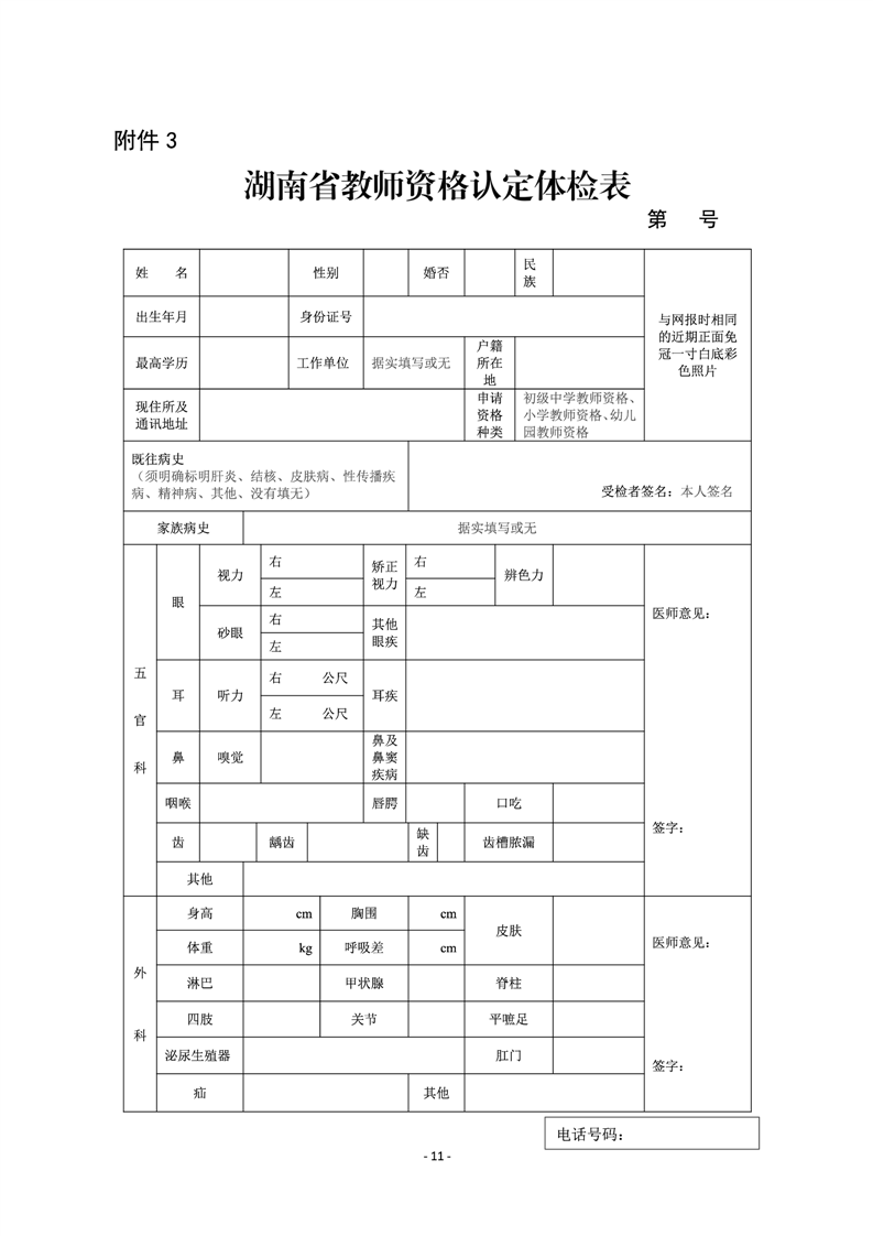 附件3湖南省教师资格认定体检表.docx