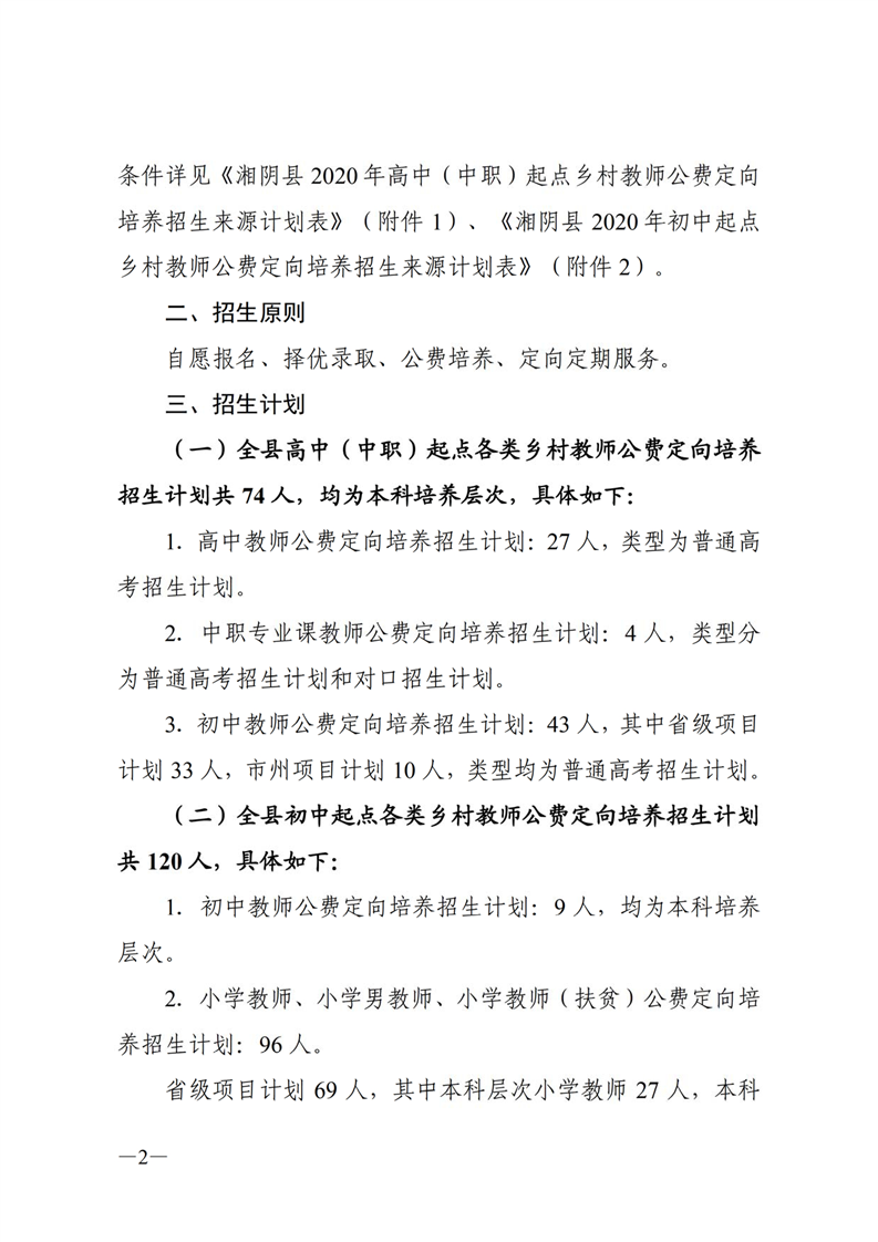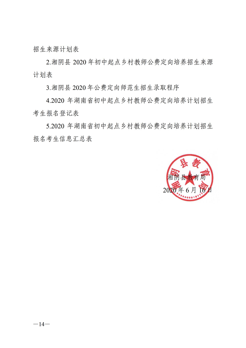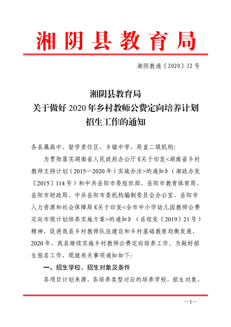 湘阴县教育局关于做好2020年乡村教师公费定向培养计划招生工作的通知