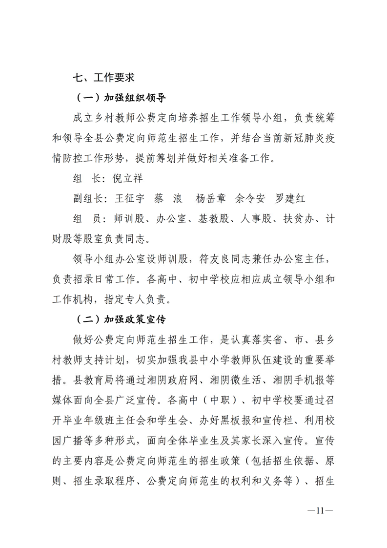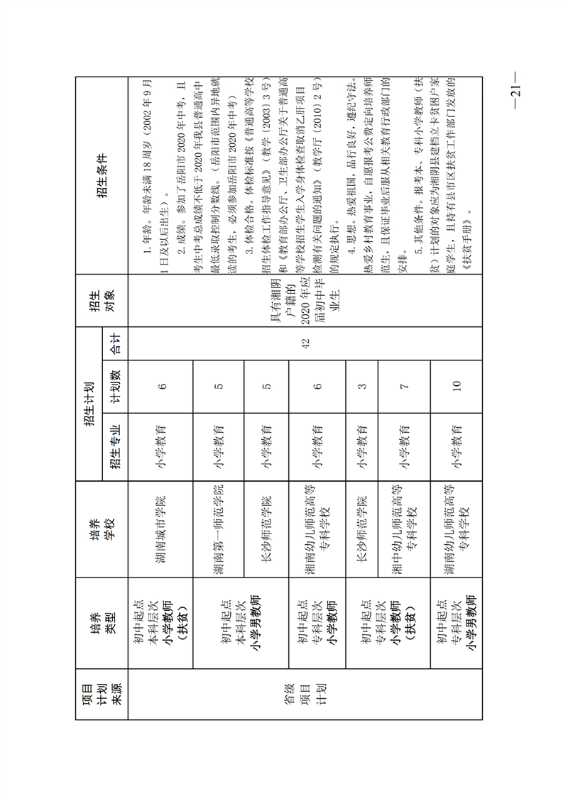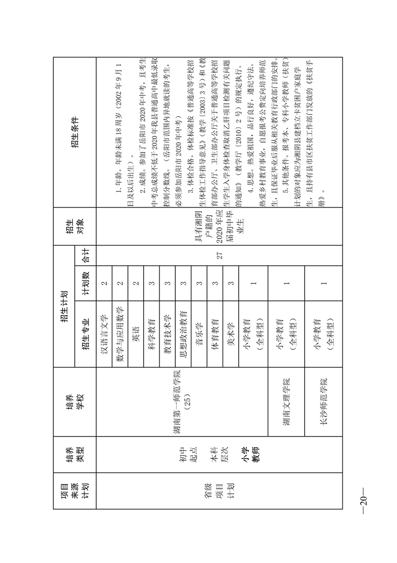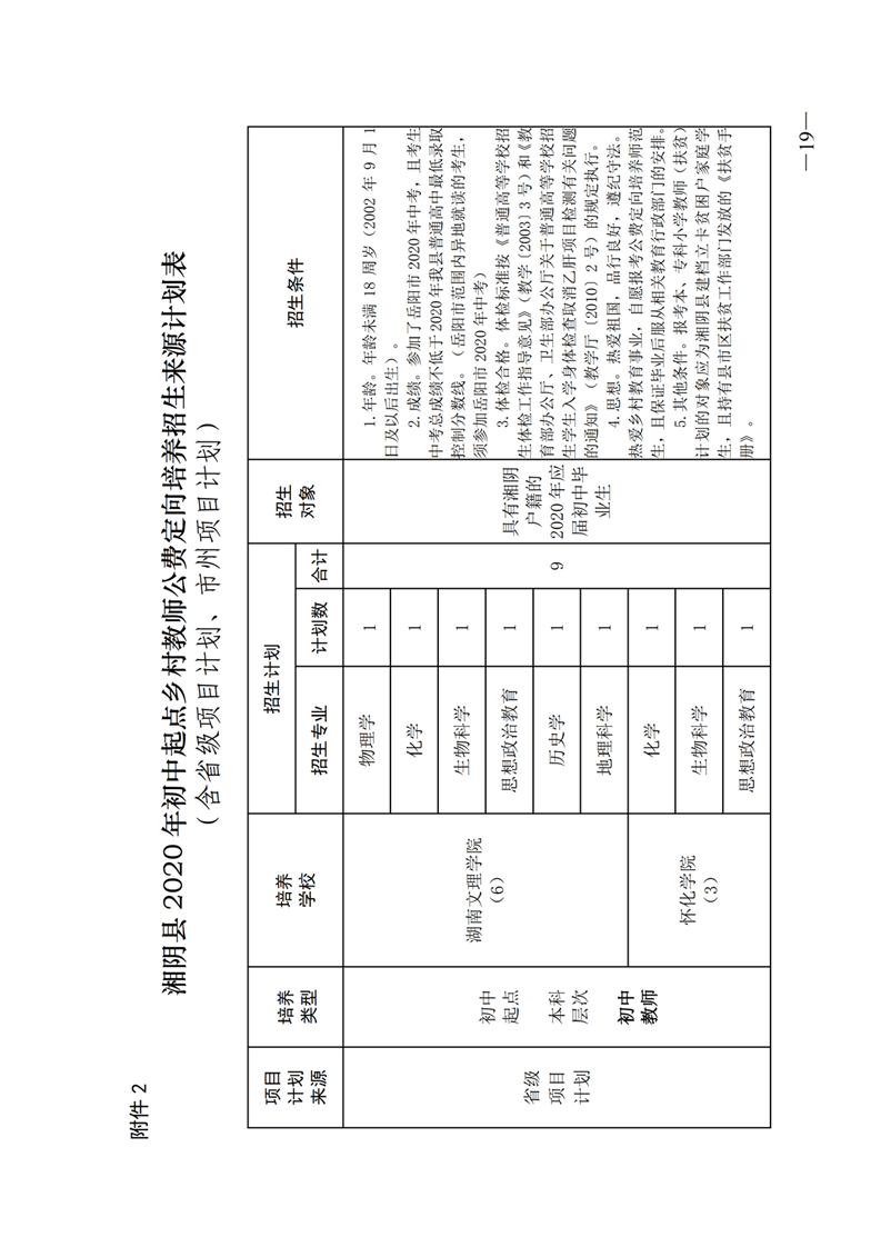 湘阴县教育局关于做好2020年乡村教师公费定向培养计划招生工作的通知