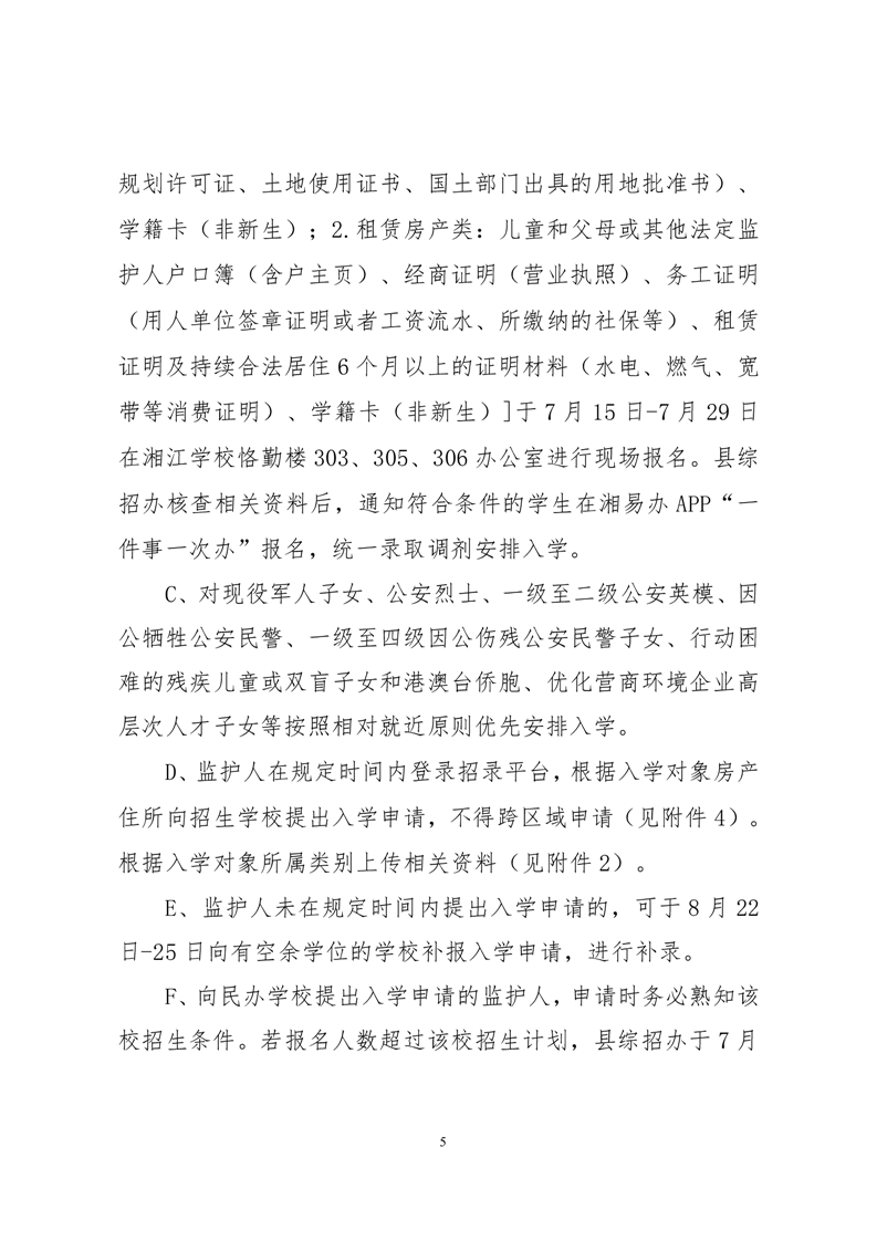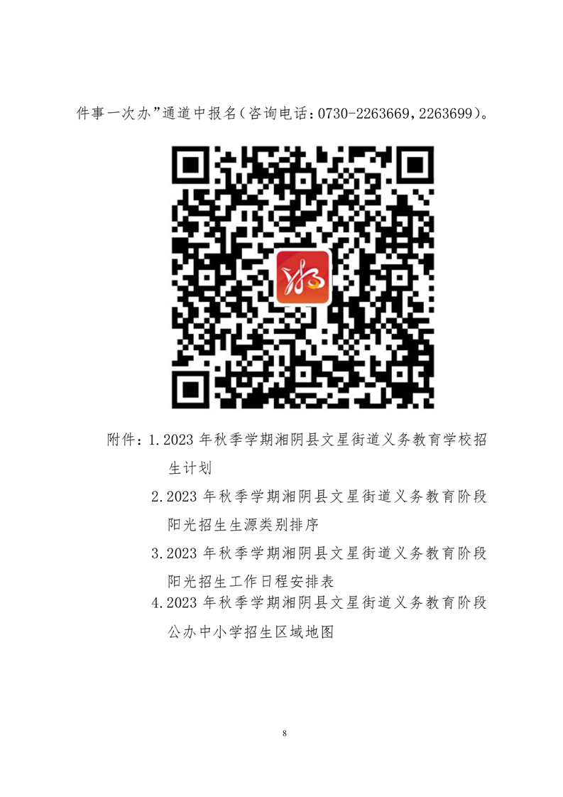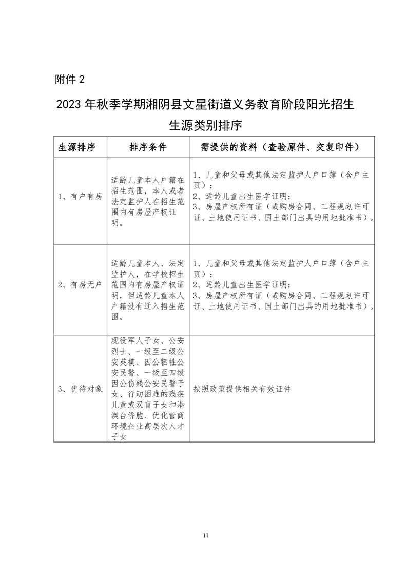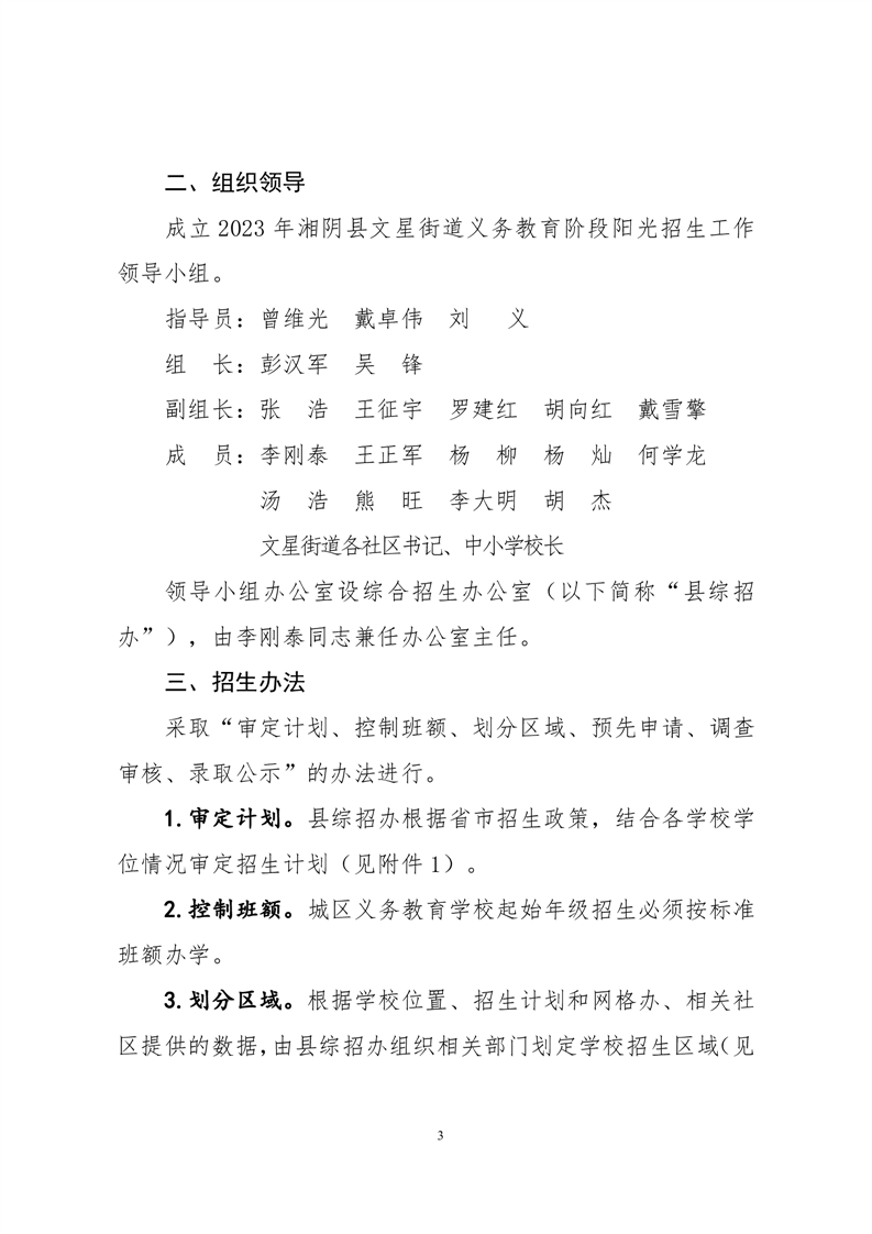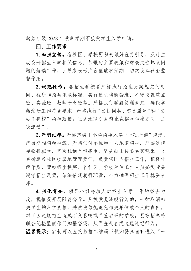 2023 年秋季学期湘阴县文星街道义务教育阶段阳光招生工作方案