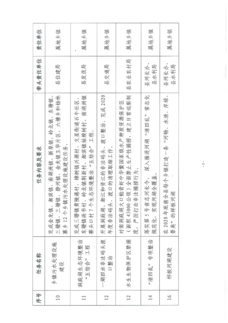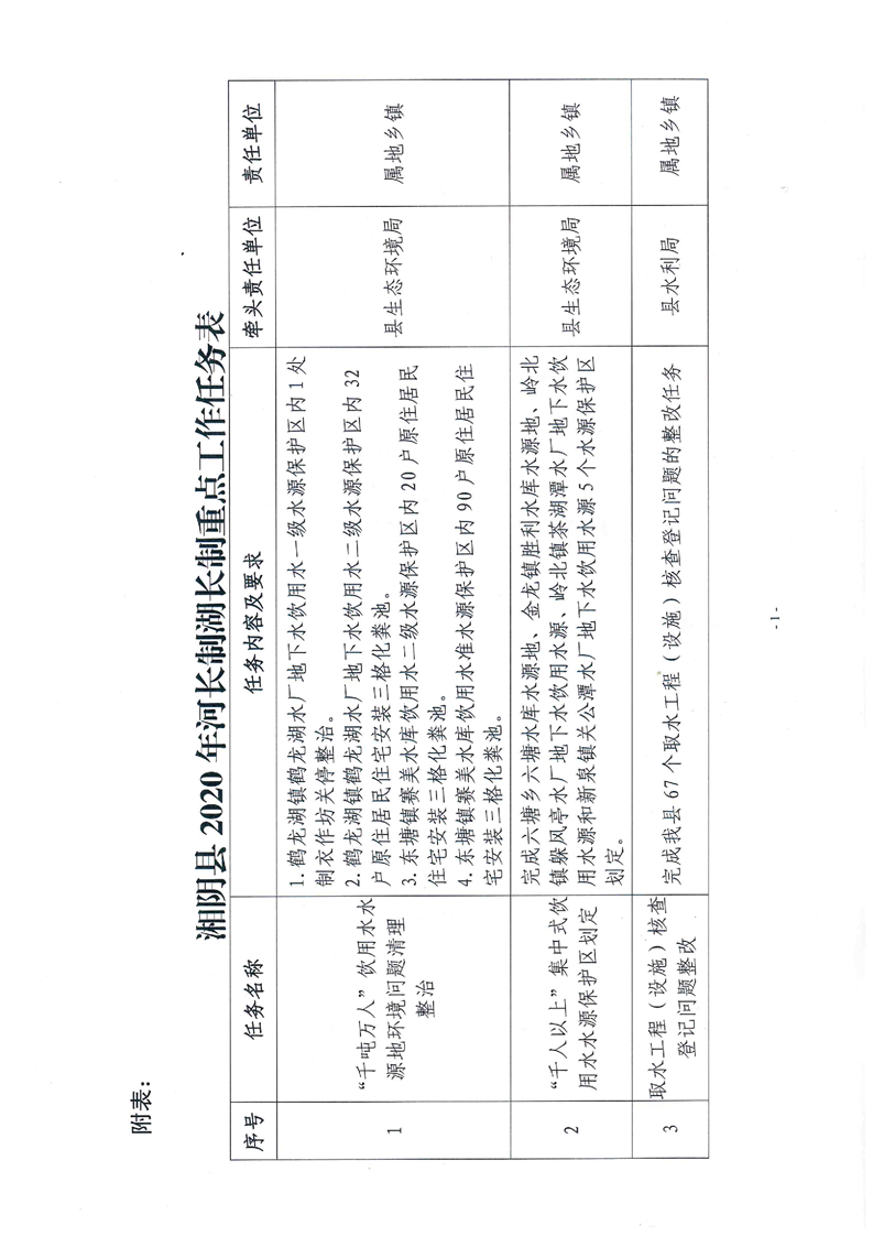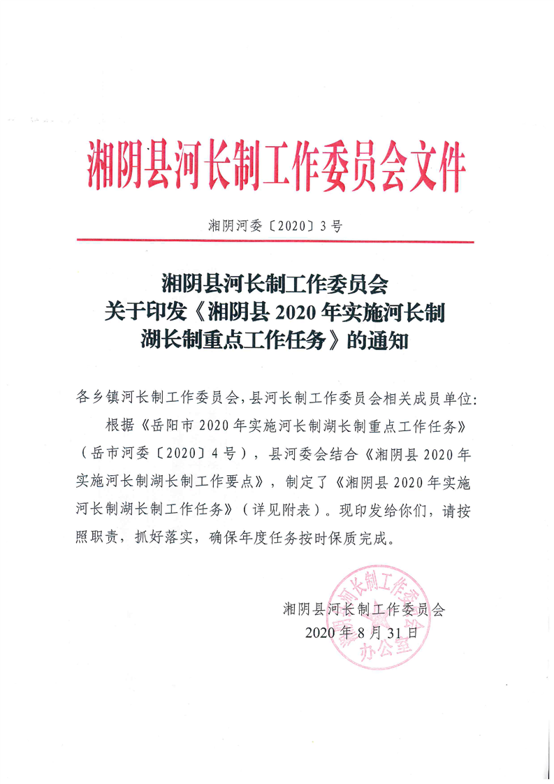 (2020)3号 关于印发《湘阴县2020年实施河长制湖长制重点工作任务》的通知