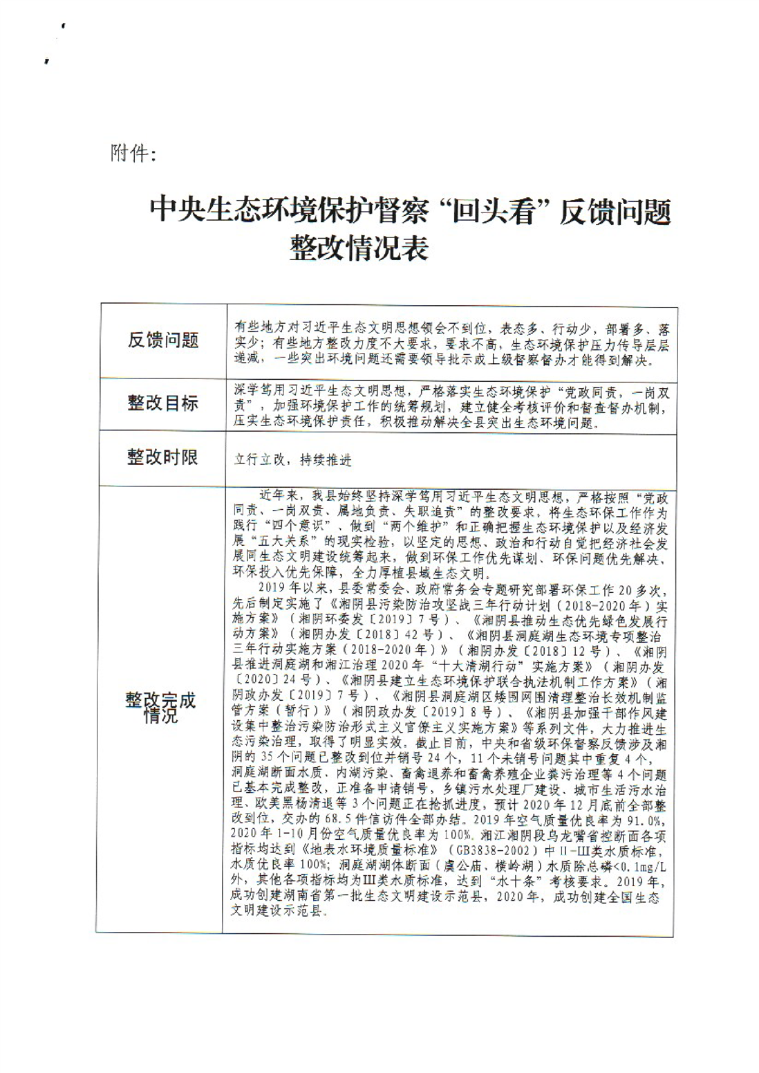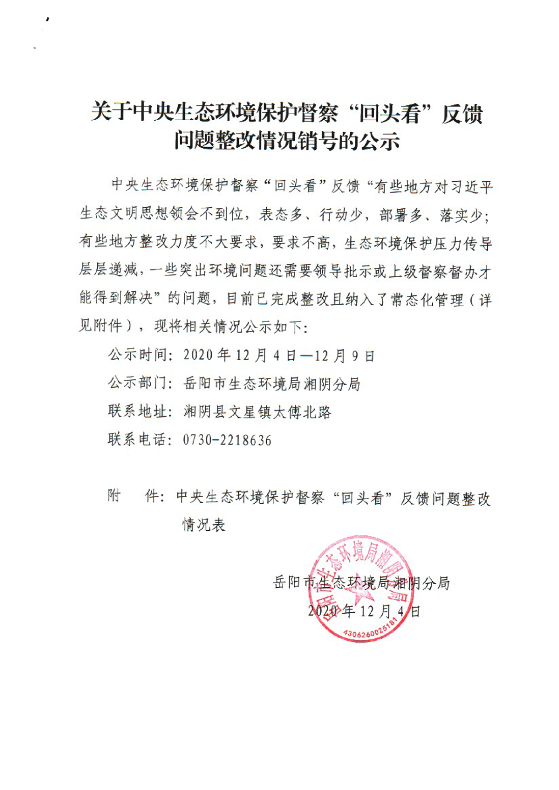 关于中央生态环境保护督察“回头看”反馈问题整改情况销号公示