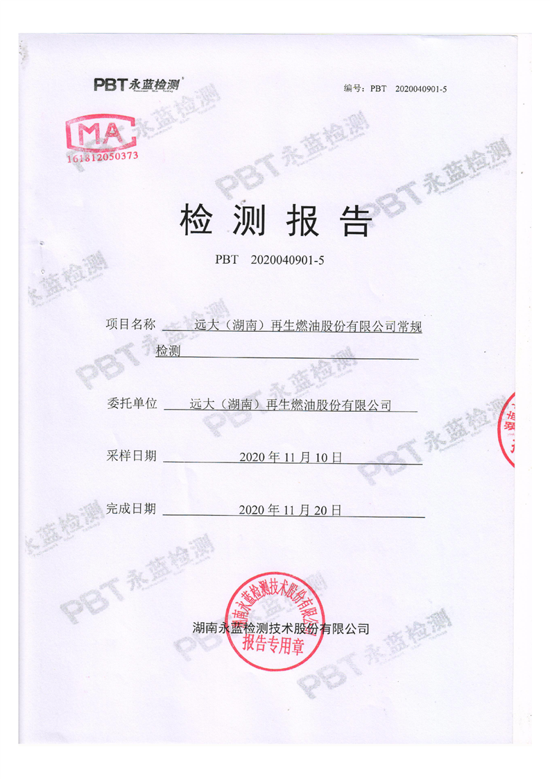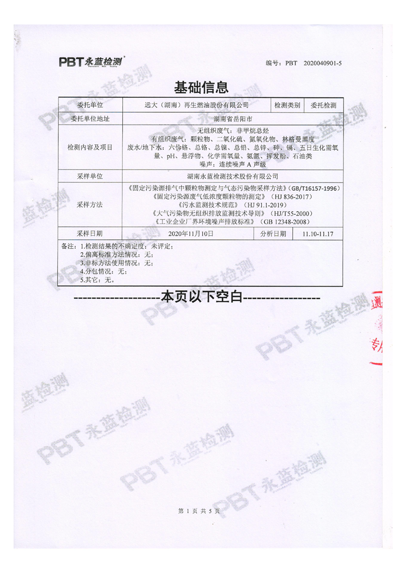 远大(湖南)再生燃油股份有限公司常规检测(地下水)