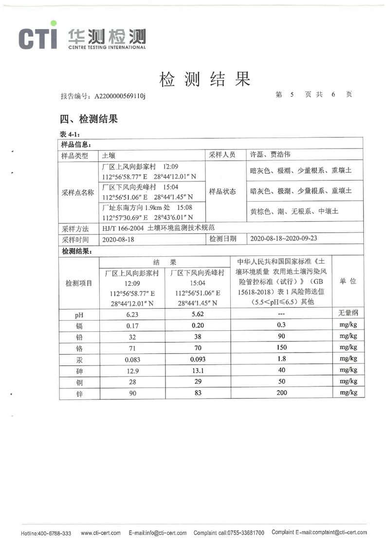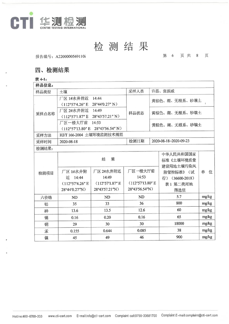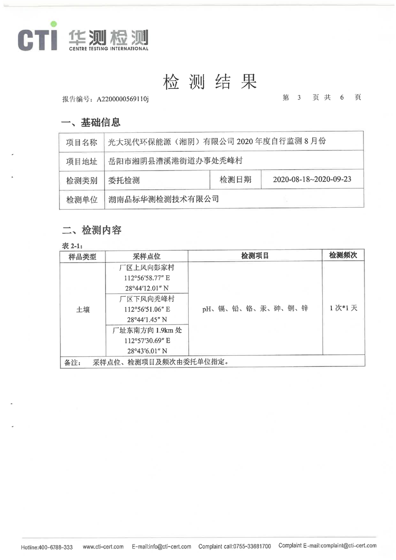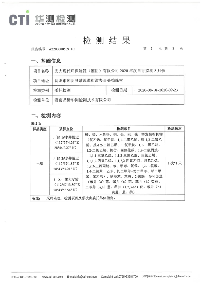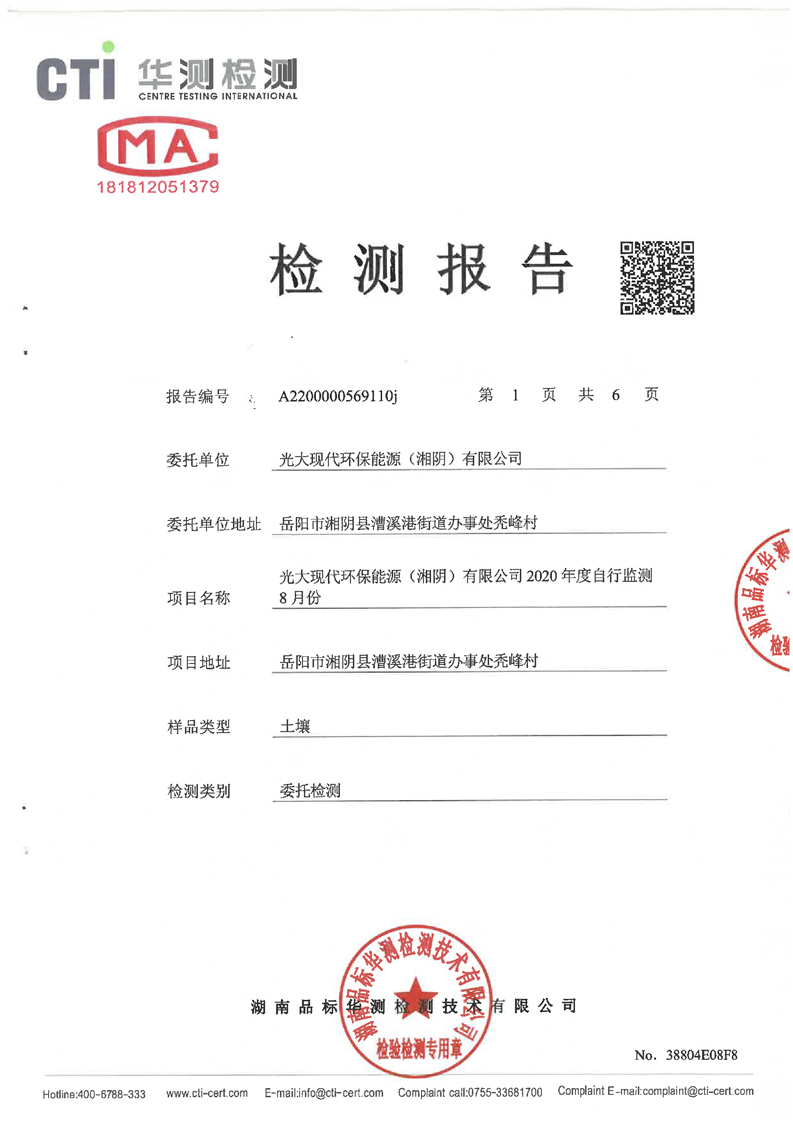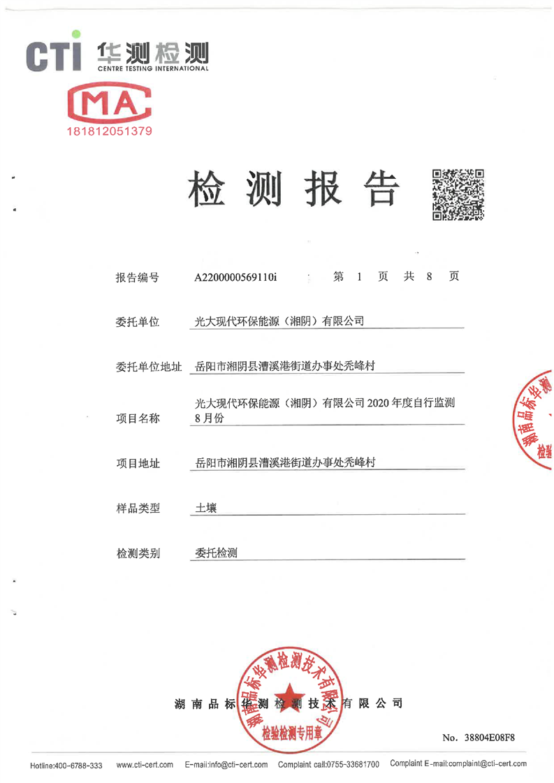 光大现代环保能源(湘阴)有限公司2020年度自行监测8月份(土壤)