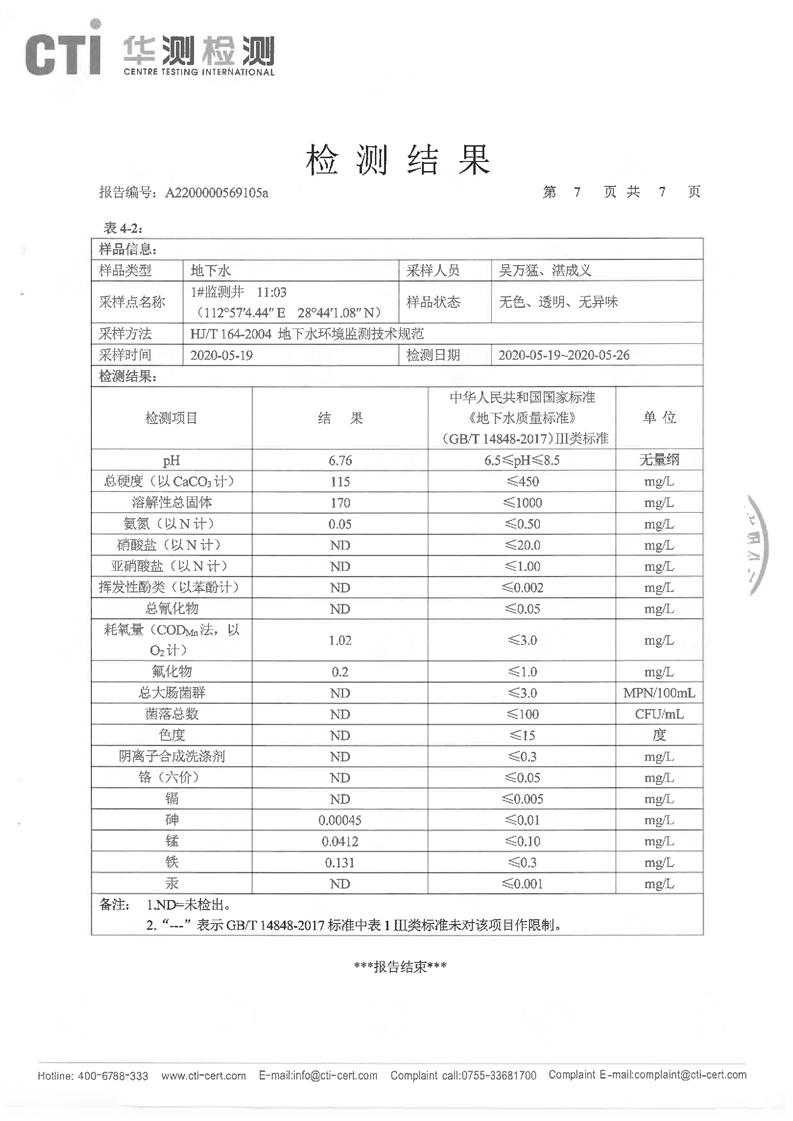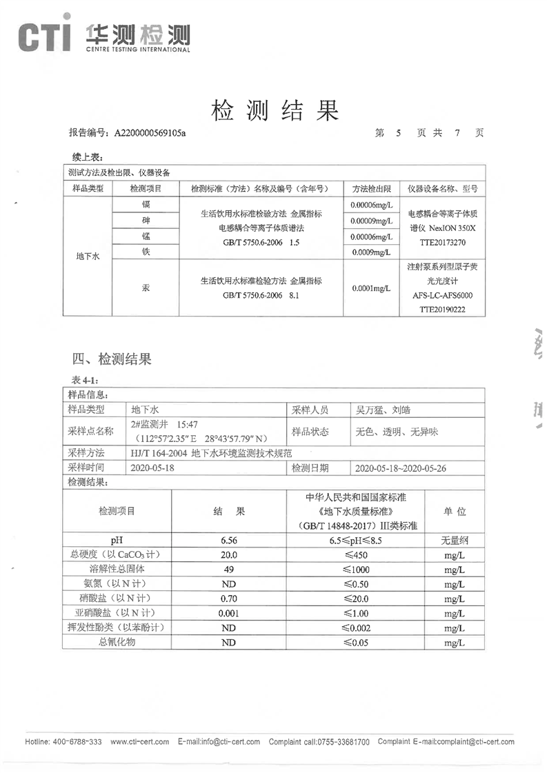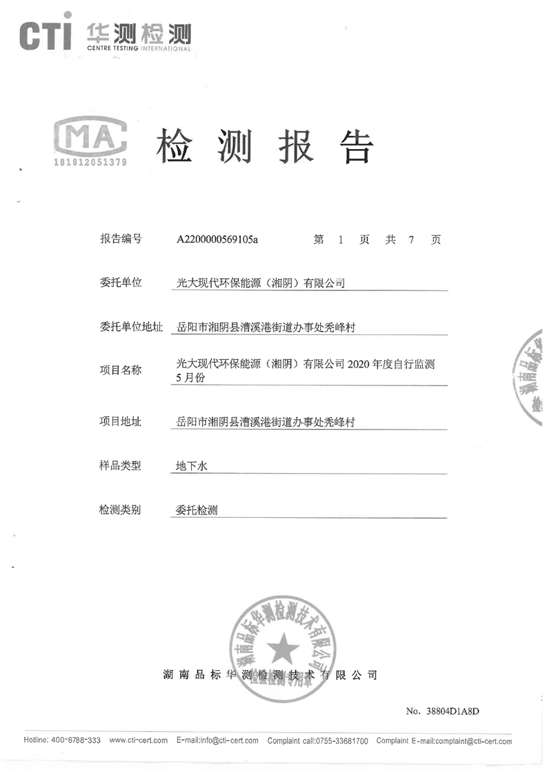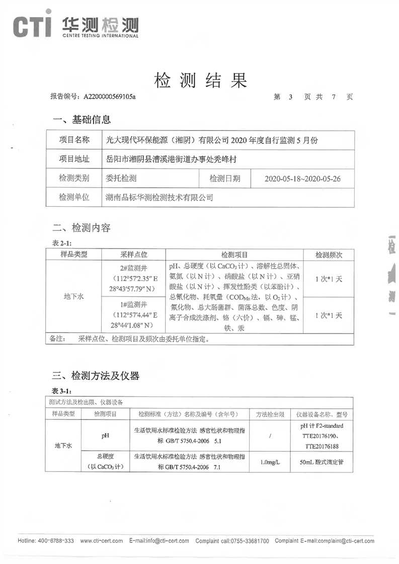 光大现代环保能源(湘阴)有限公司自行监测5月份(地下水)